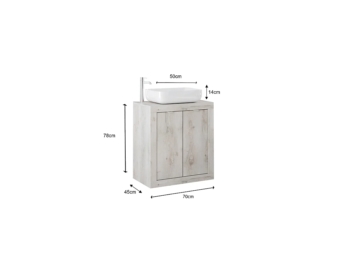 Meuble de salle de bain une vasque et 2 portes, longueur 70cm, collection CISA, coloris blanc effet bois