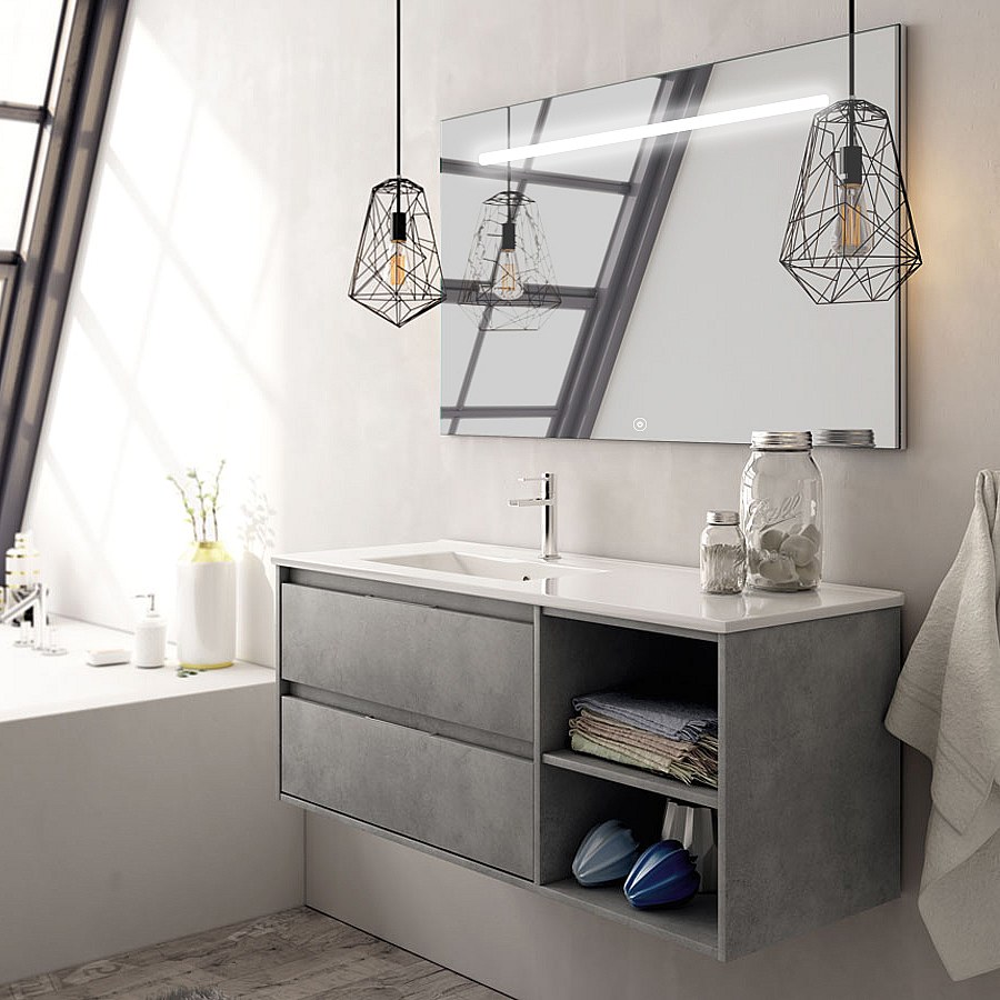Meuble de salle de bain vasque déportée 2 tiroirs OLYMPE et miroir Led STAM - ciment (gris) - 120cm
