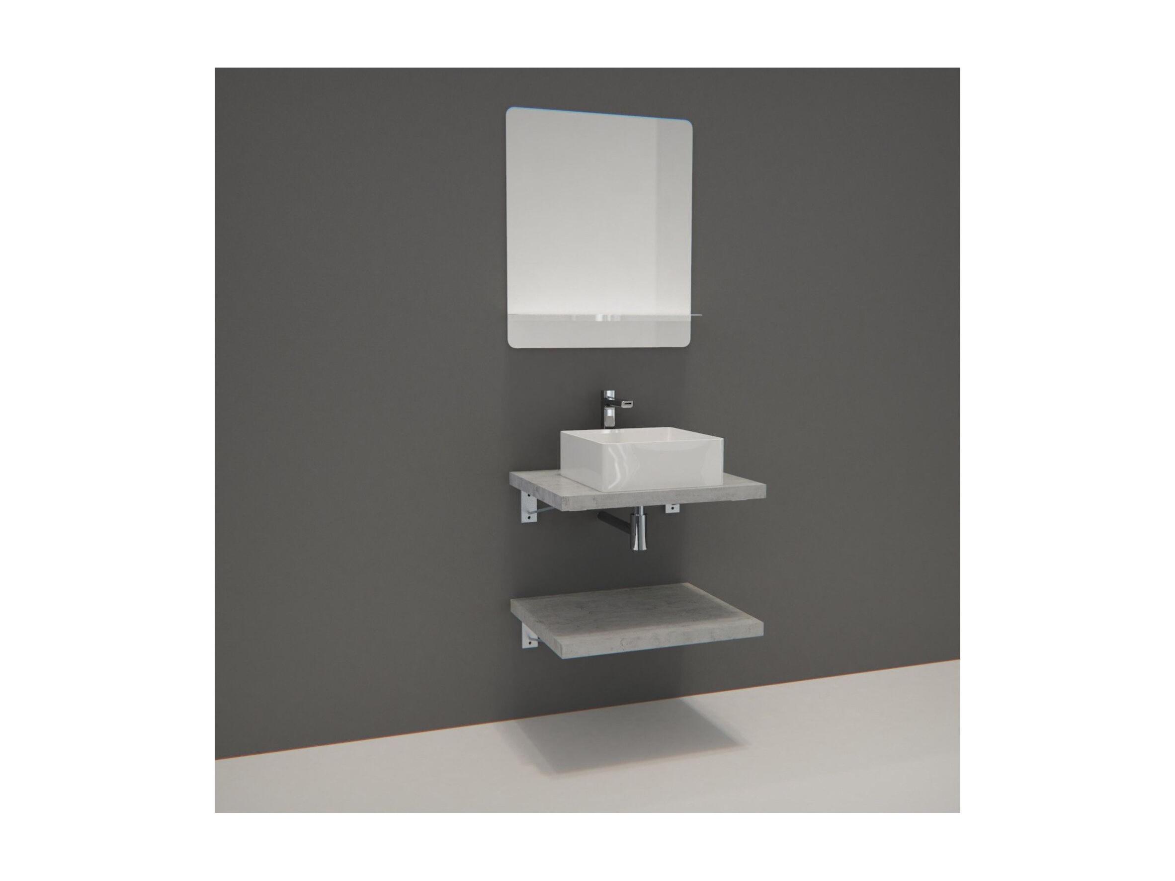 Meuble de Salle de Bain WILL - 2 Plans suspendus 60 cm + Vasque + Miroir + Equerres