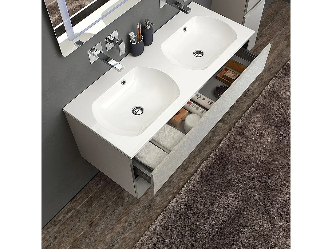 Meuble De Salle De Bains 120Cm Gris Perle Avec Double Vasque Et Colonne | Valentina