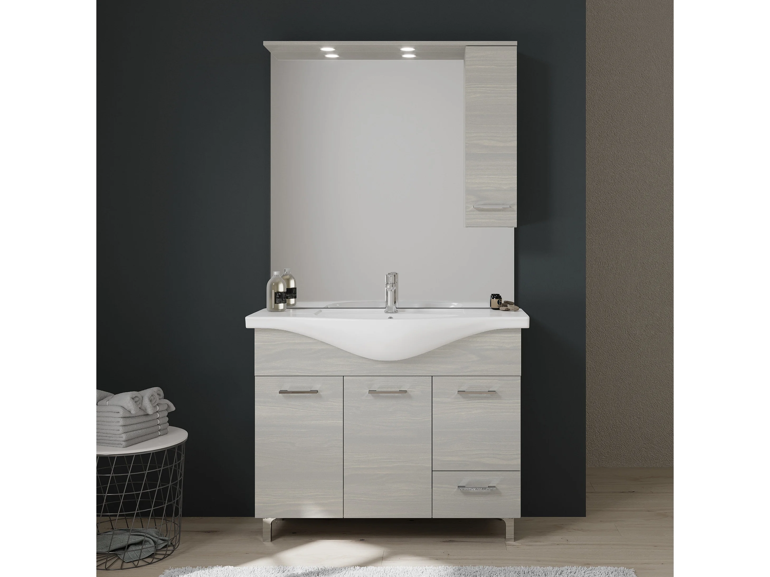 Meuble De Salle De Bains À Poser 105 Cm Avec Portes Lavabo Et Miroir | Rimini