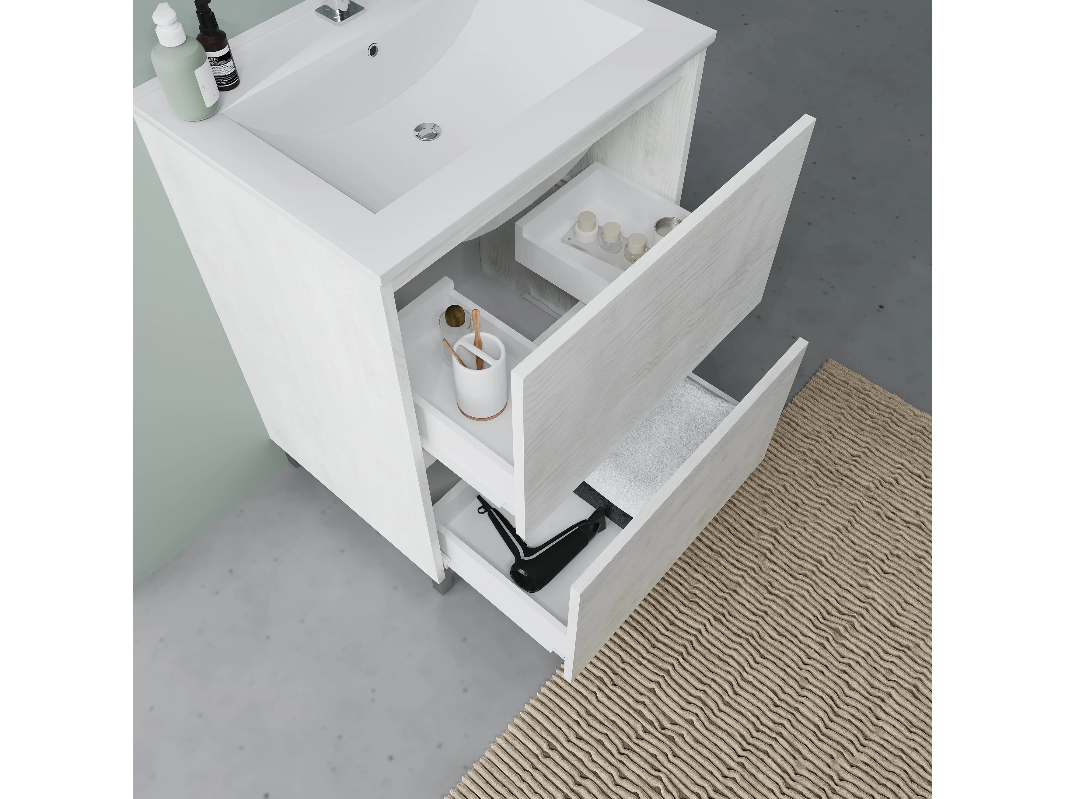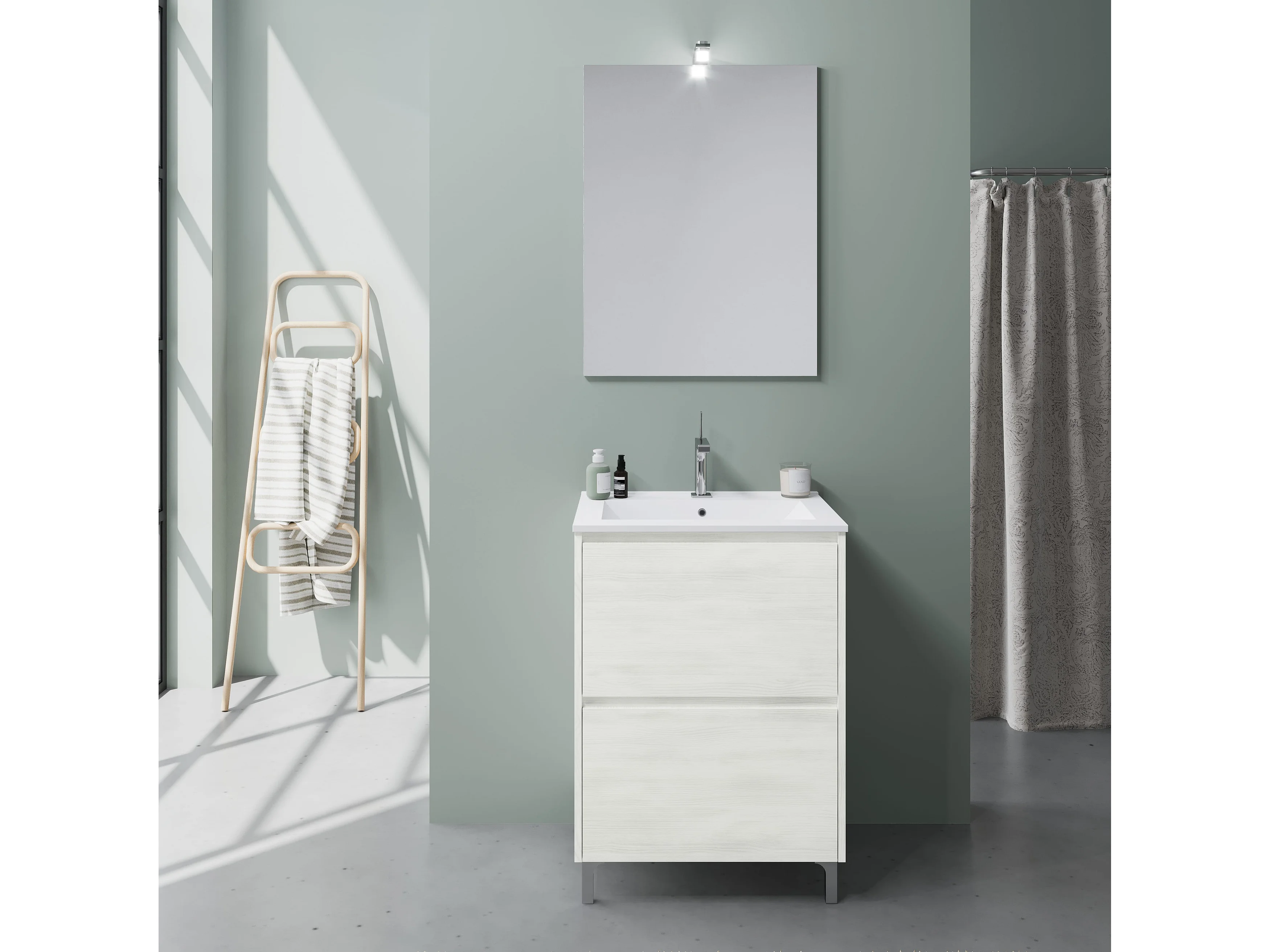 Meuble De Salle De Bains À Poser 60 Cm Blanc Avec Lavabo | Laguna