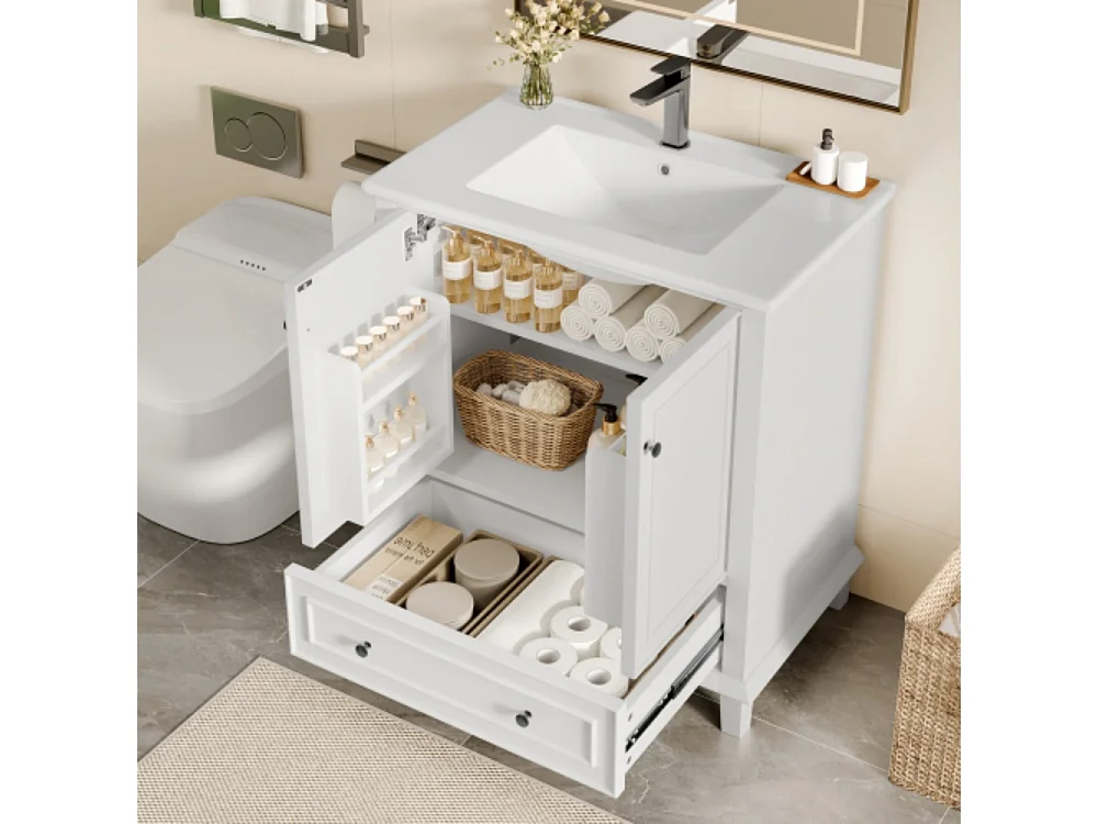 Meuble de salle de bains au sol 76x46x87cm avec lavabo céramique intégré et plan de toilette entièrement laquée blanc