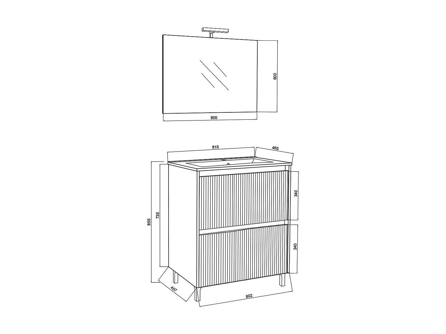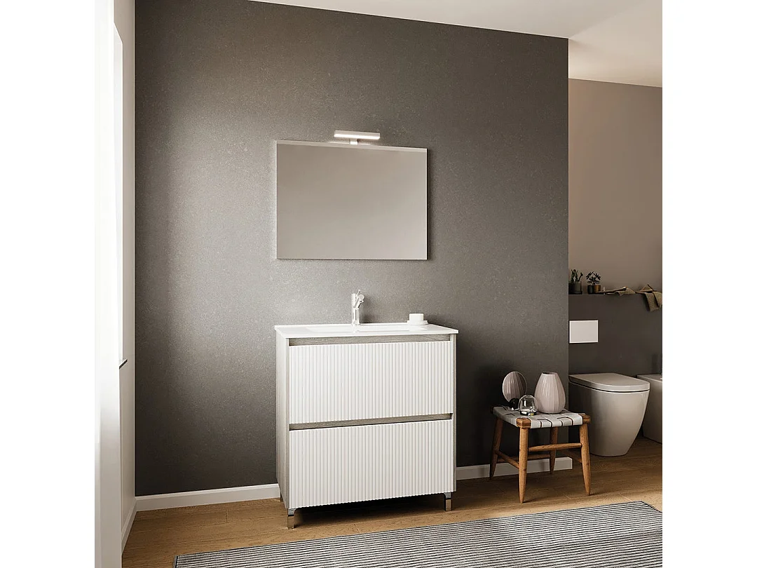 Meuble De Salle De Bains Au Sol 80Cm Avec Front Cannele | Corfu'