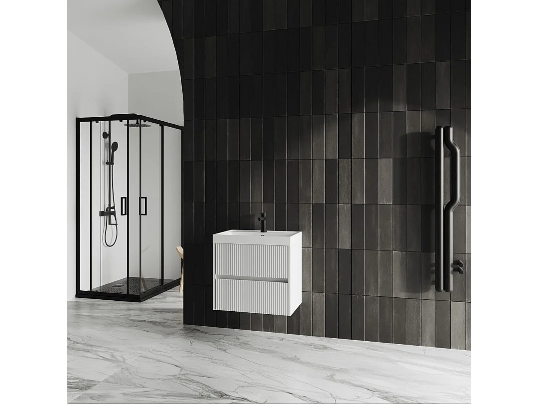 Meuble De Salle De Bains Avec Lavabo 60Cm Blanc Mat Cannettato | Cortina