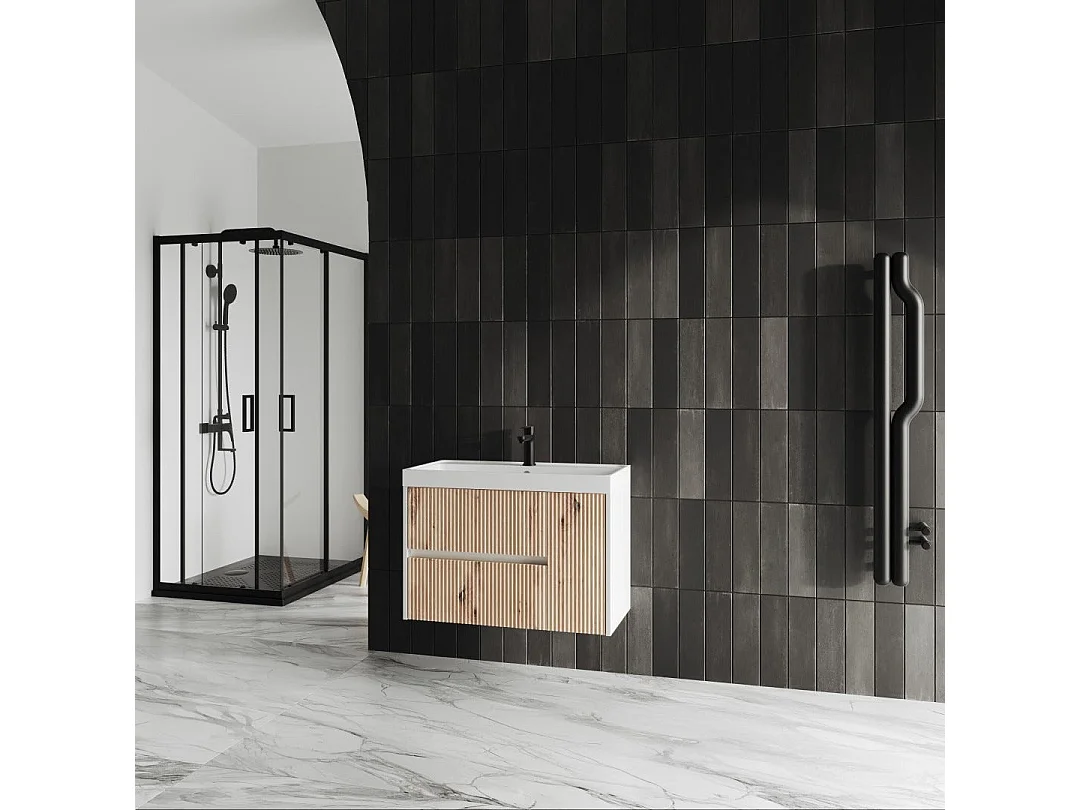 Meuble De Salle De Bains Avec Vasque 80Cm Chêne Doré Cannelé | Cortina