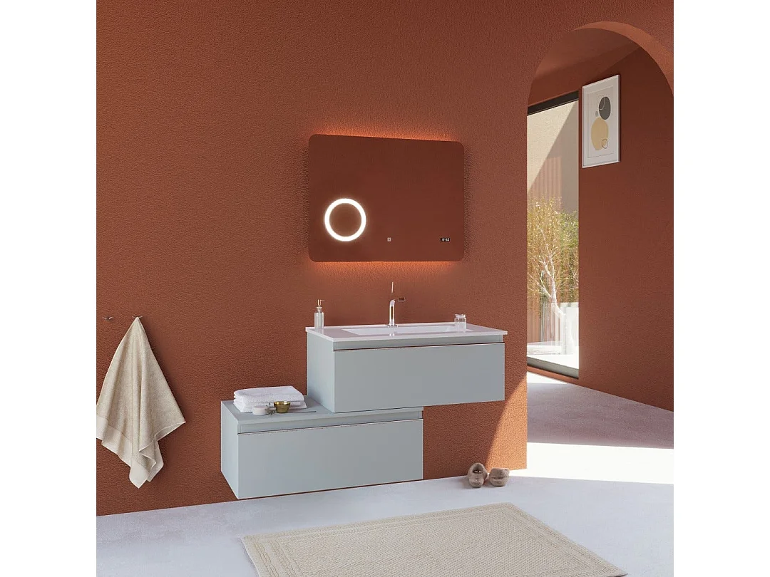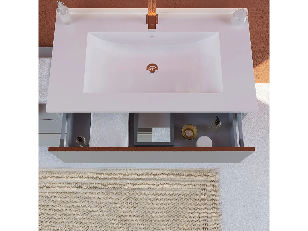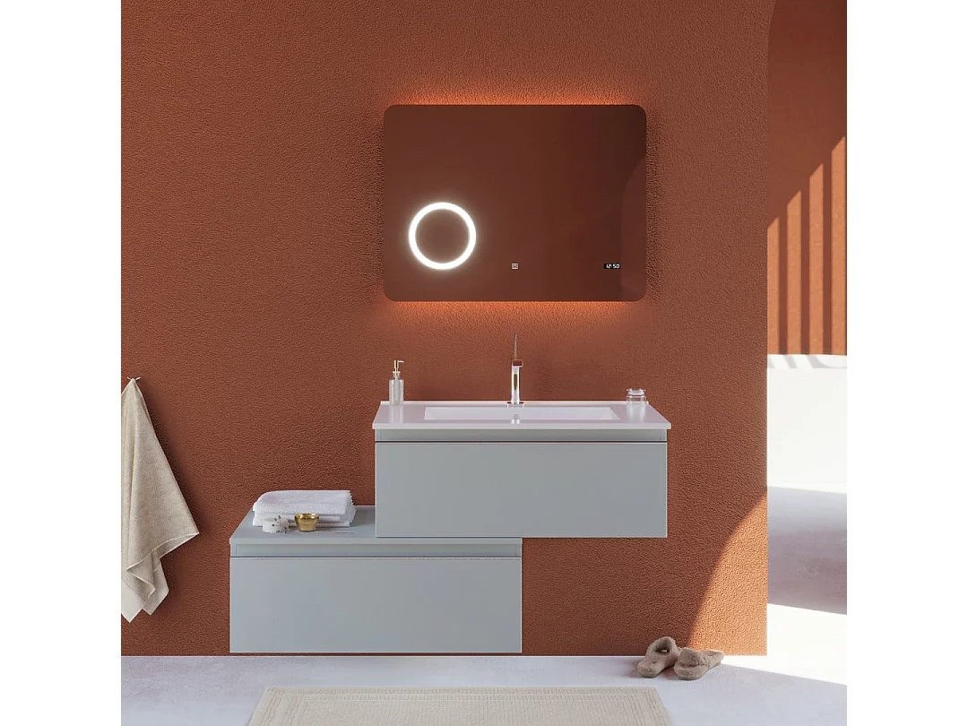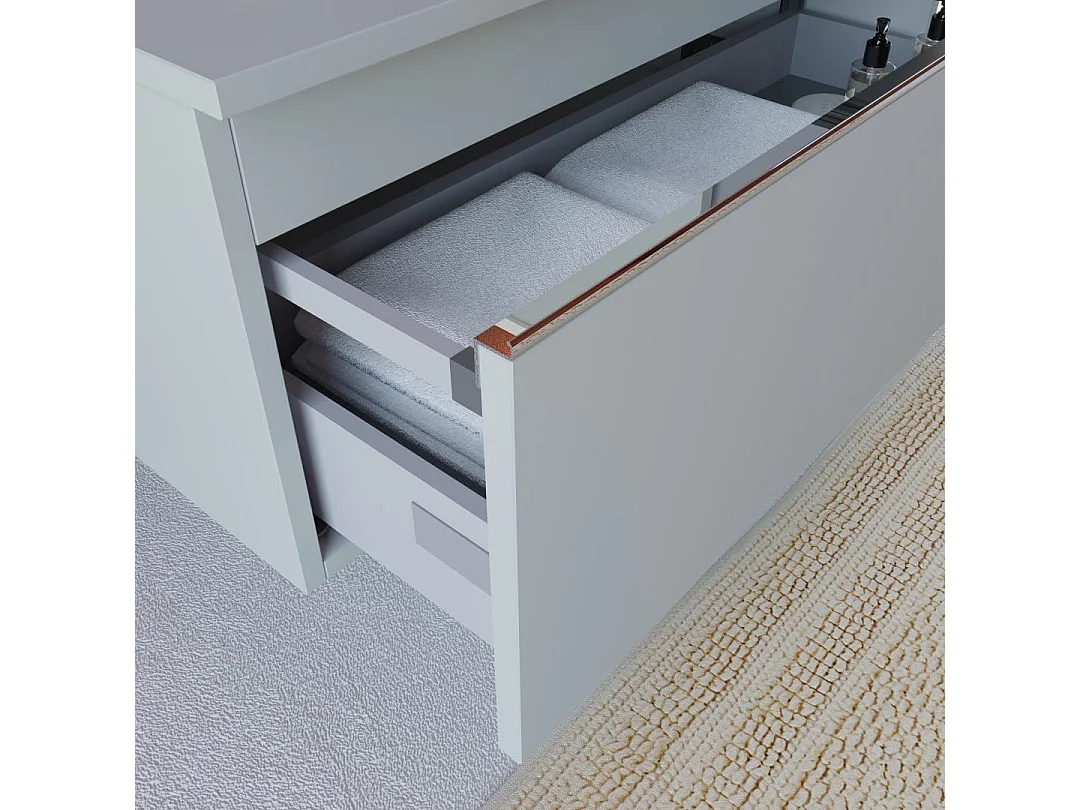 Meuble De Salle De Bains Excentré À Suspendre Avec Deux Tiroirs Gris Clair | Seattle