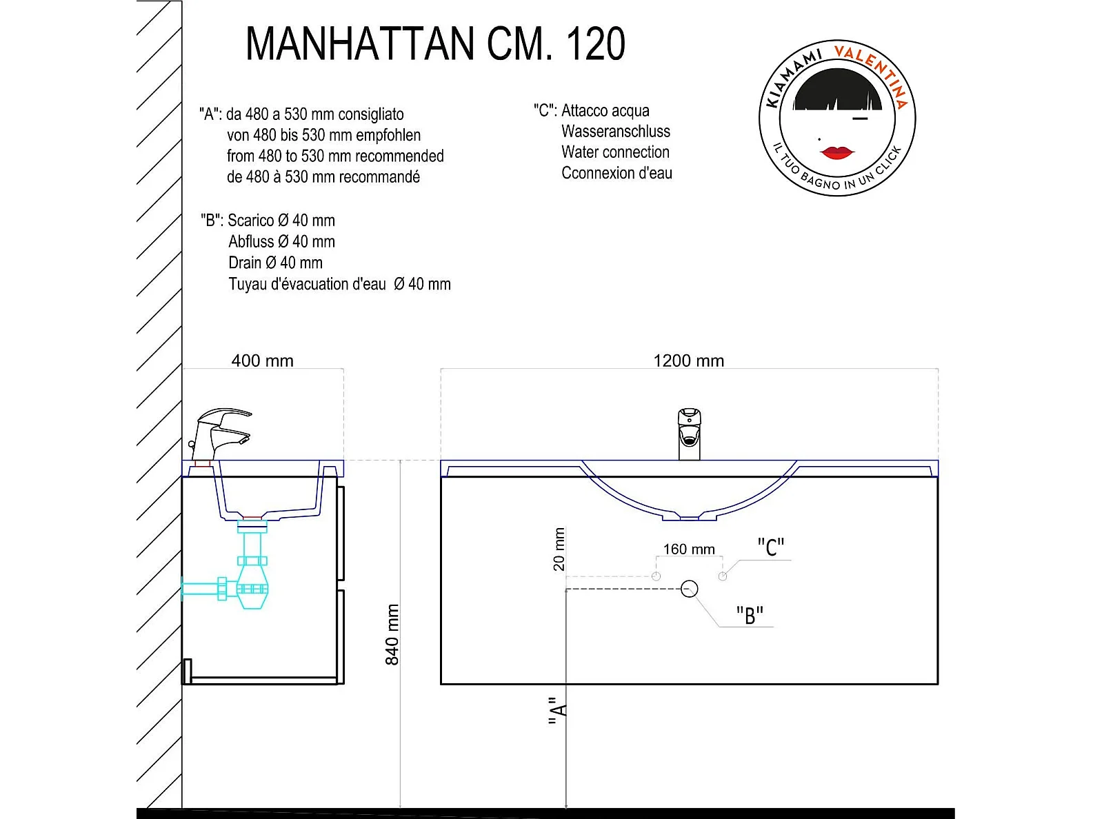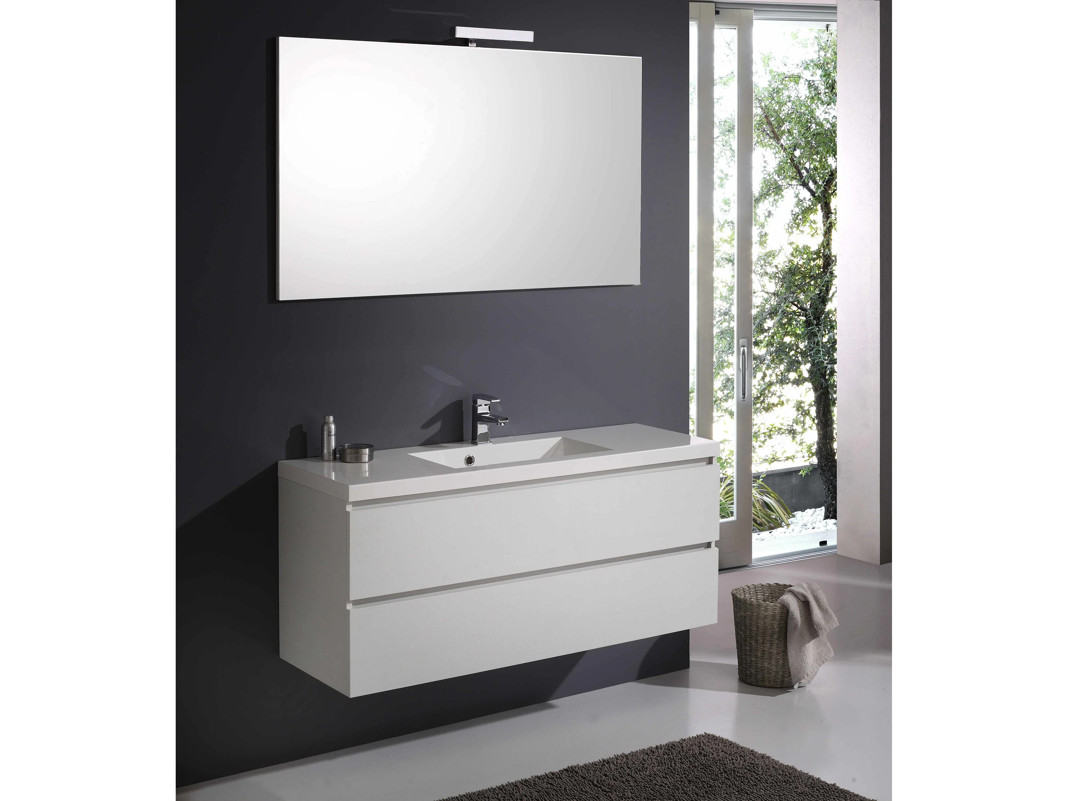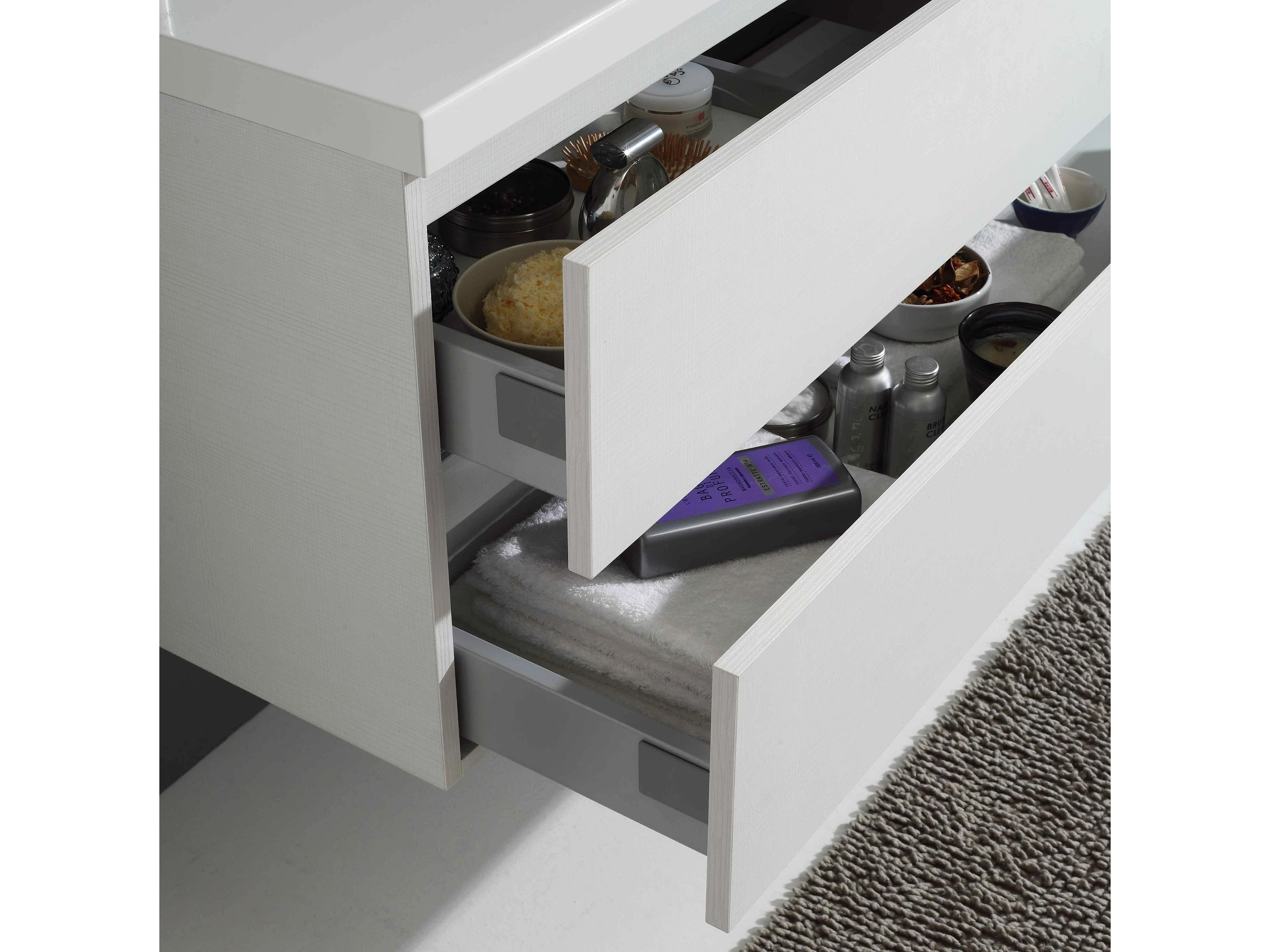 Meuble De Salle De Bains Avec Tiroirs 120 Cm En Bois Blanchi | Manhattan