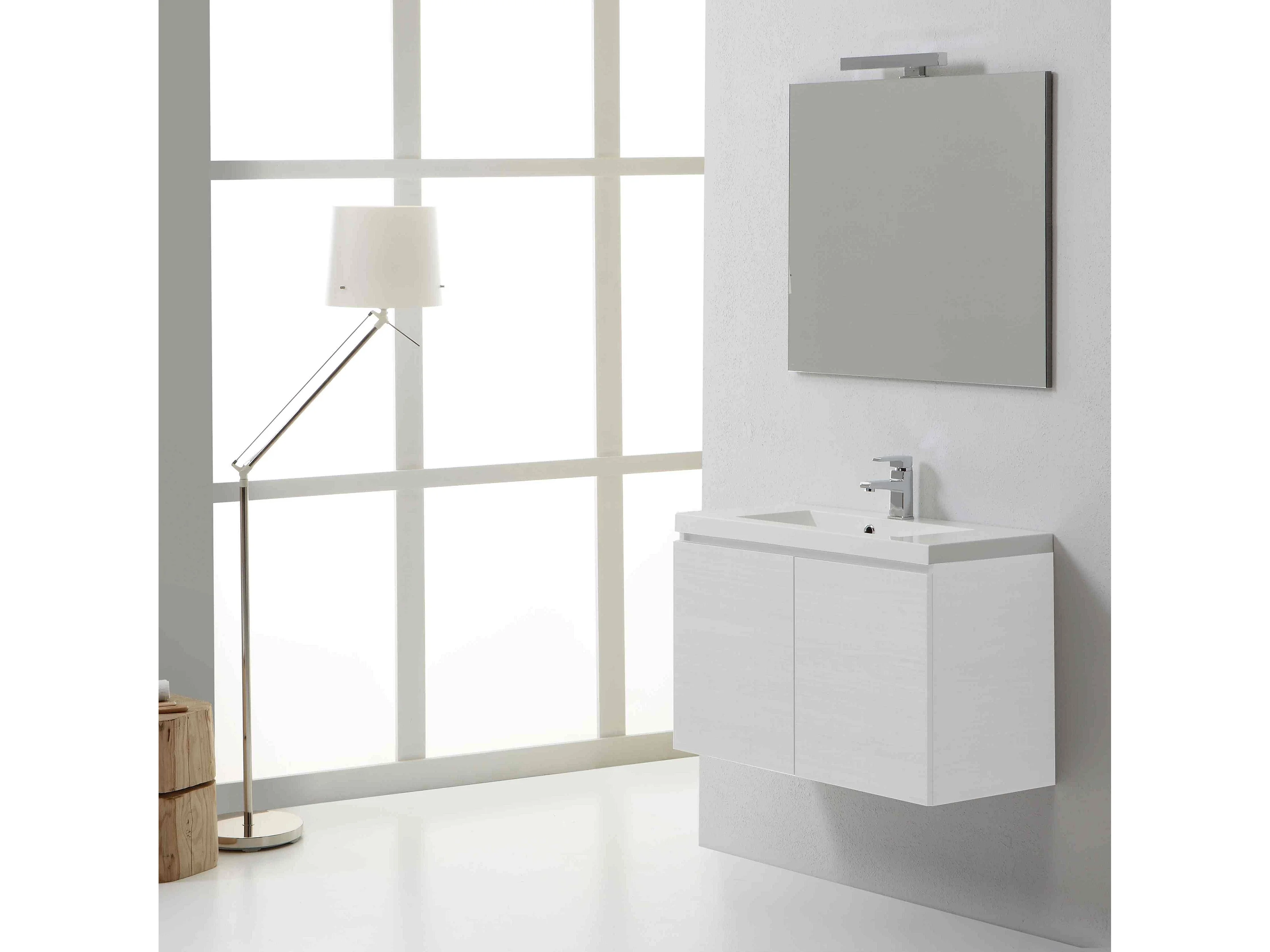 Meuble De Salle De Bains Moderne 80 Cm Avec Portes Bois Blanchi | Manhattan