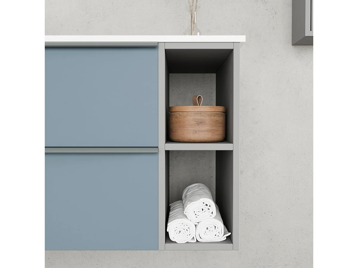 Meuble De Salle De Bains Mural 100 Cm Bleu Clair Mat Et Lavabo Asymétrique | New York