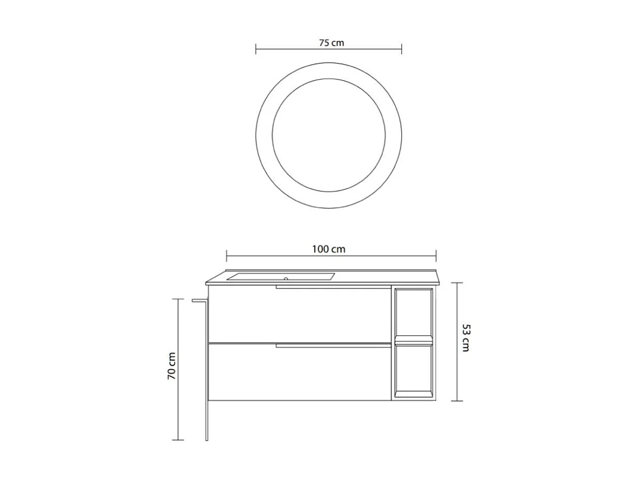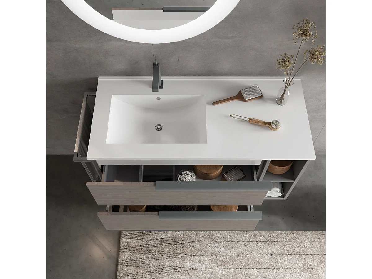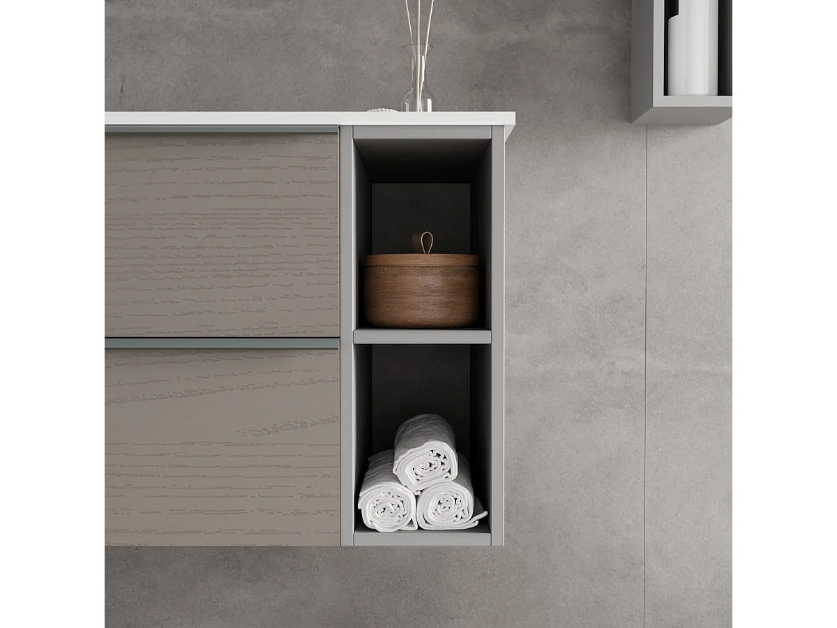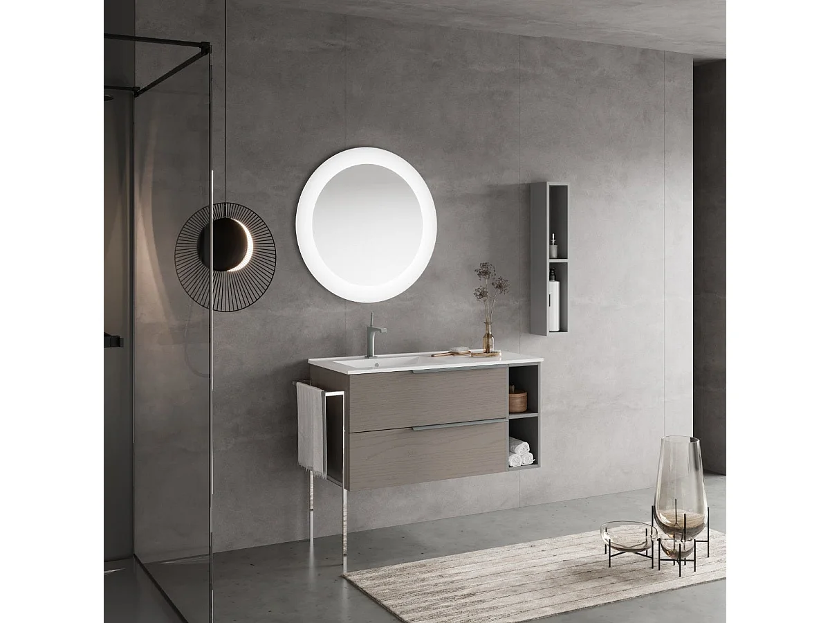 Meuble De Salle De Bains Mural 100Cm Tiroirs En Frêne Et Compartiment Ouvert | New York
