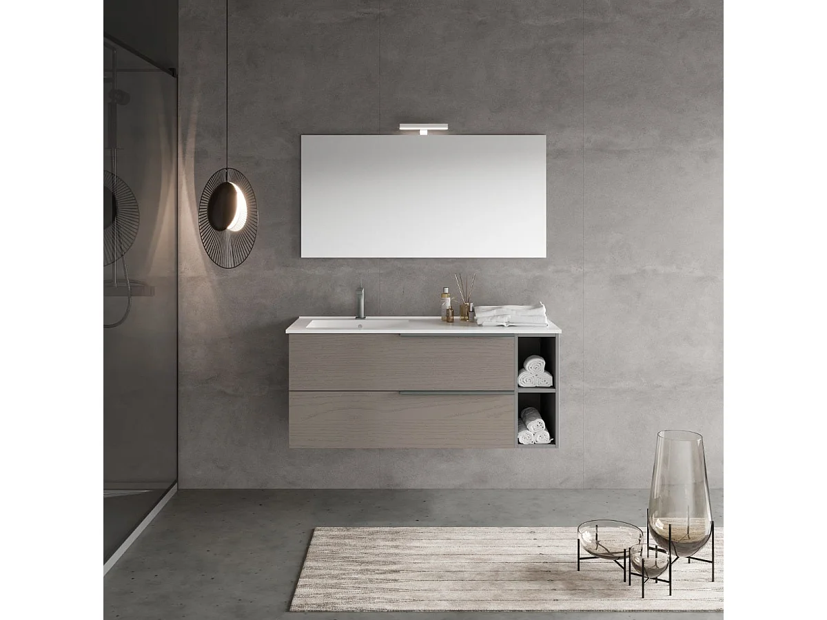 Meuble De Salle De Bains Mural De 120 Cm Avec 2 Tiroirs À Cendres Et Un Compartiment Ouvert | New York