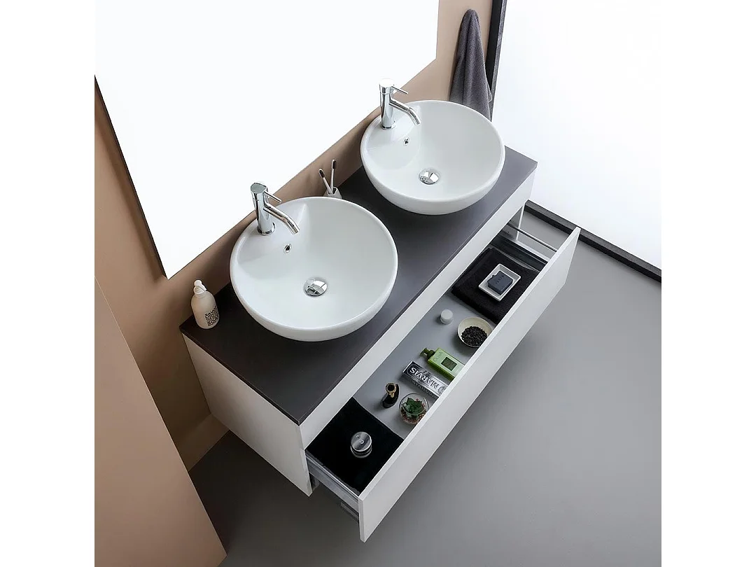 Meuble De Salle De Bains Sous-Vasque Suspendu 120Cm Blanc, Plateau Gris Et Miroir 120X110 | Sole