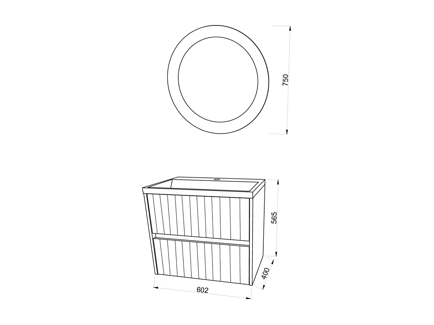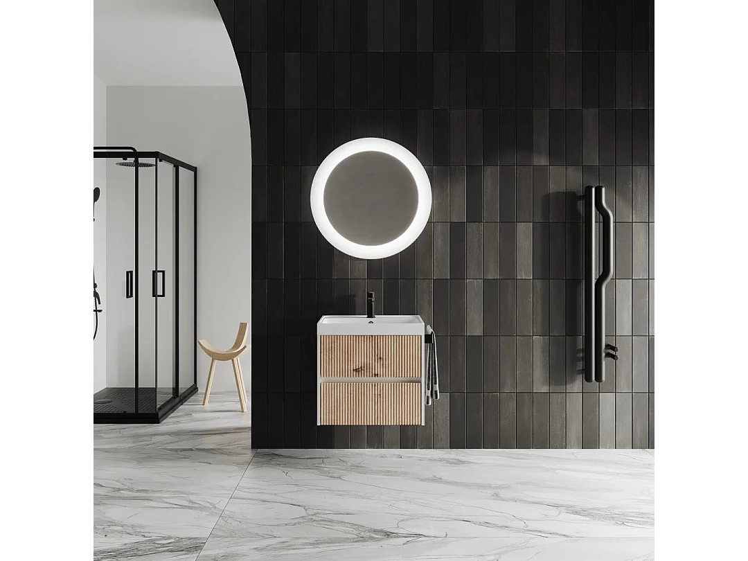 Meuble De Salle De Bains Suspendu 60Cm 2 Tiroirs Chêne Doré Canneté| Cortina