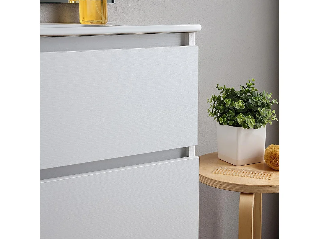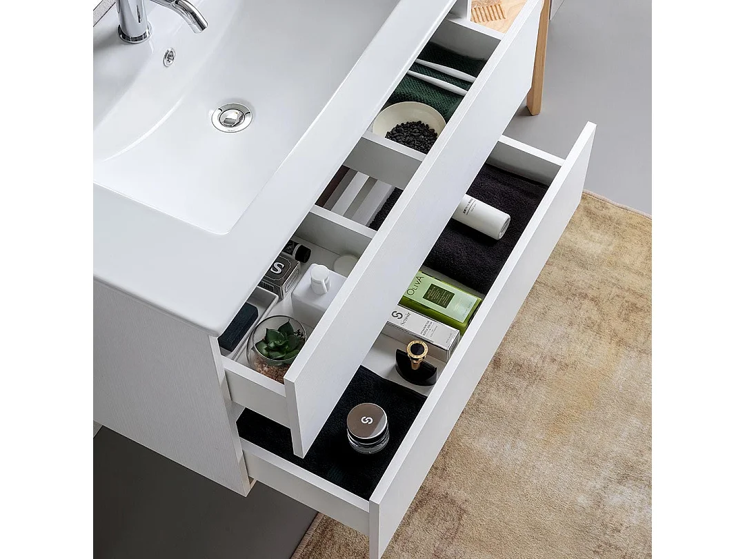 Meuble De Salle De Bains Suspendu 80Cm 2 Tiroirs Blanc Avec Miroir 80X110 | Bilbao