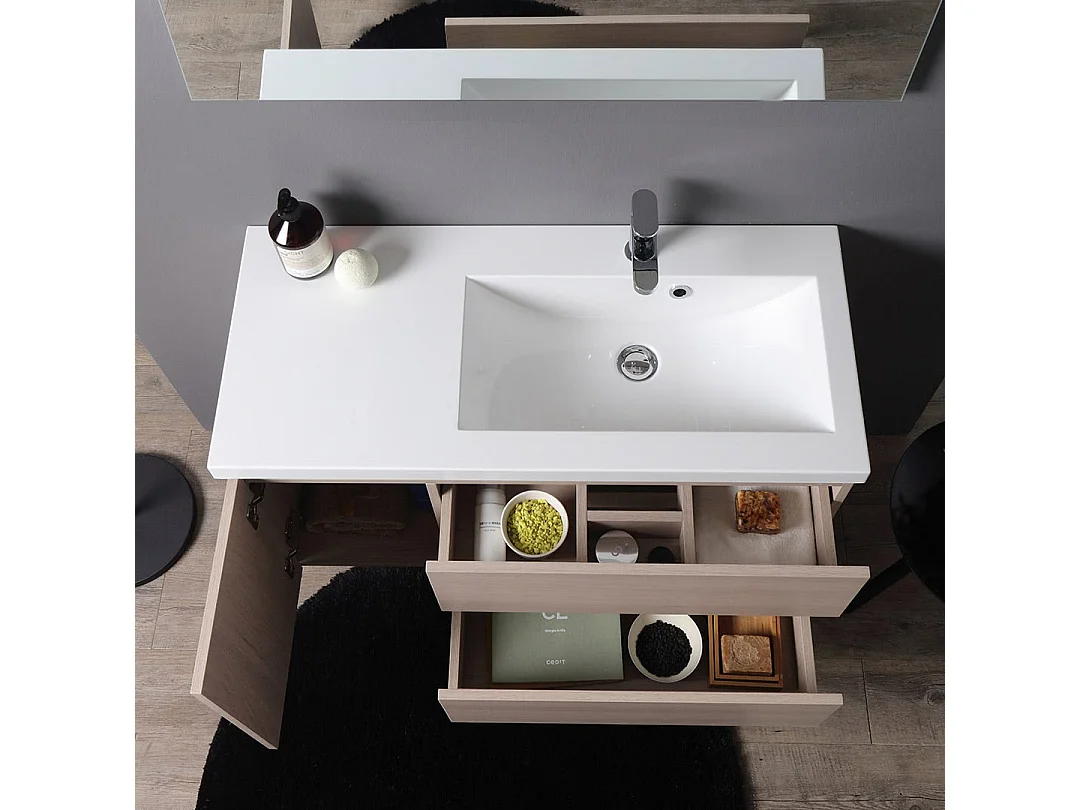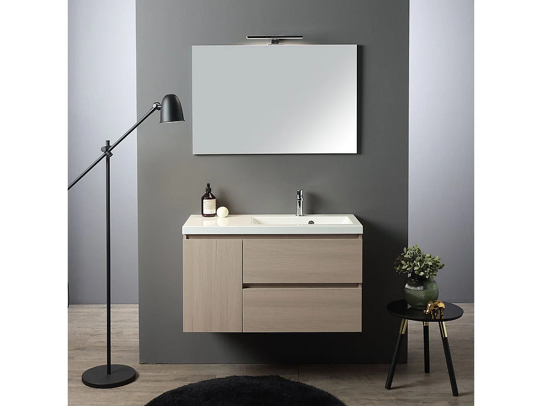 Meuble De Salle De Bains Suspendu En Orme De 90Cm Avec Lavabo Décentré À Droite | Malaga
