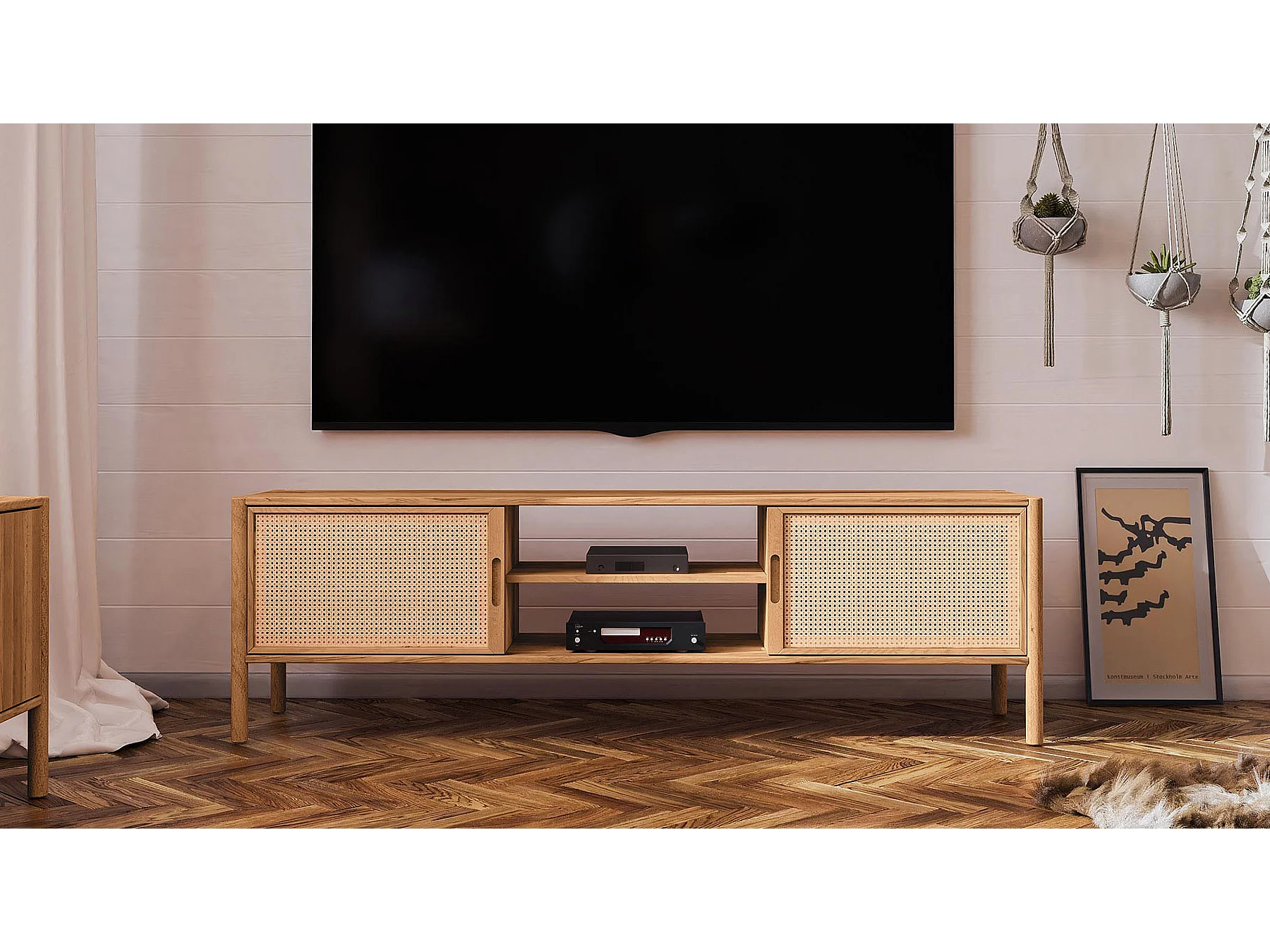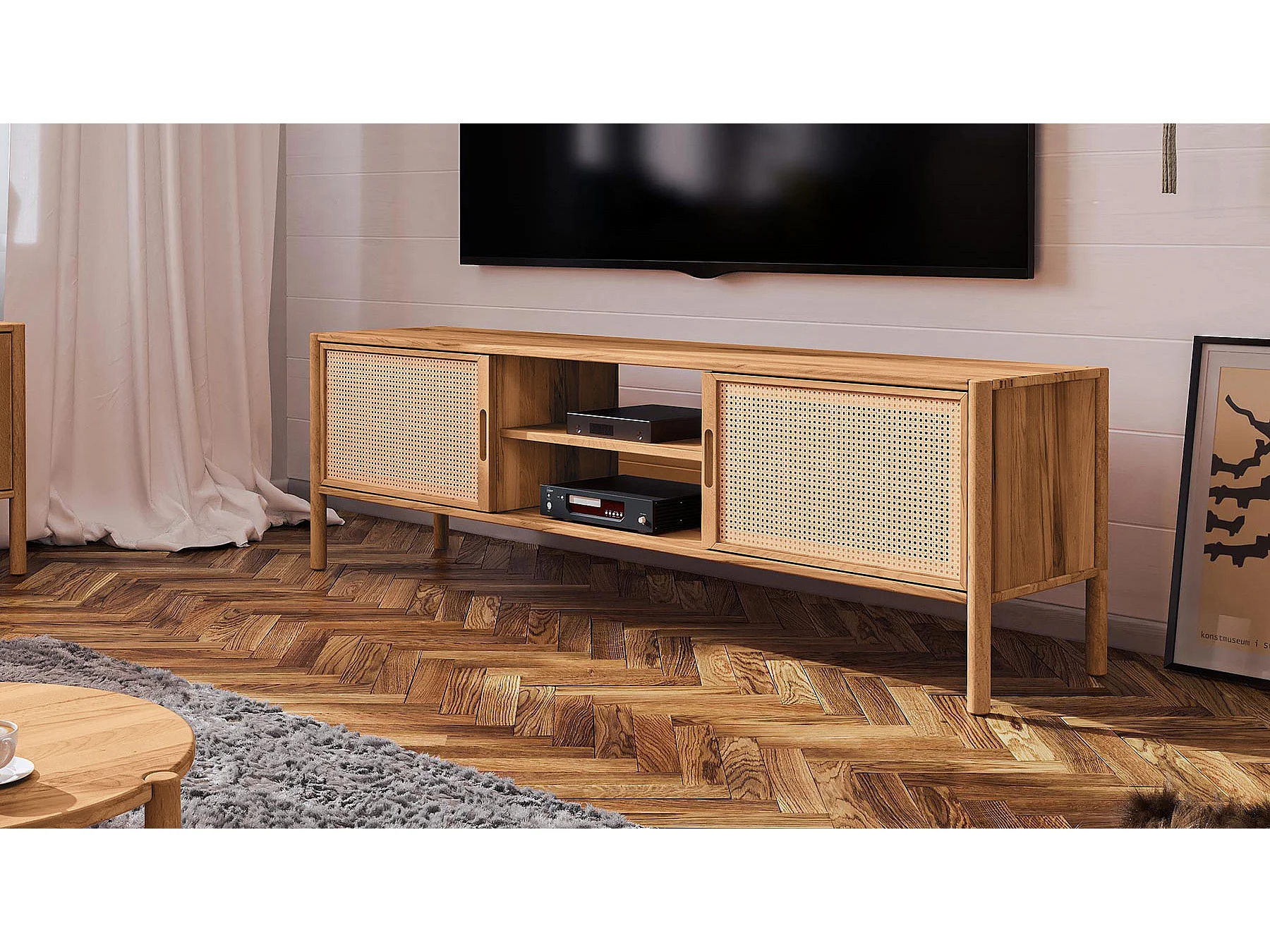Meuble de télévision hêtre et canage sogno 204x46cm