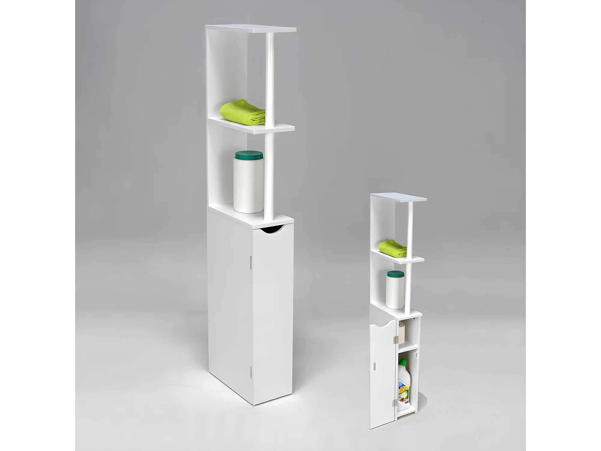 Meuble colonne rangement salle de bain 2 placards 3 étagères style contemporain blanc