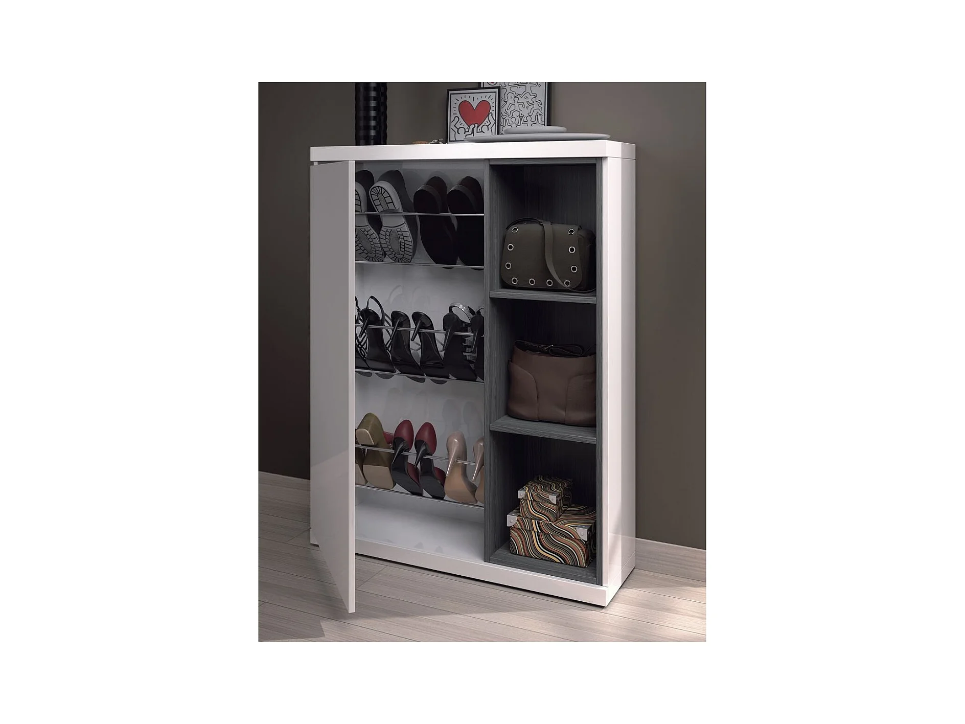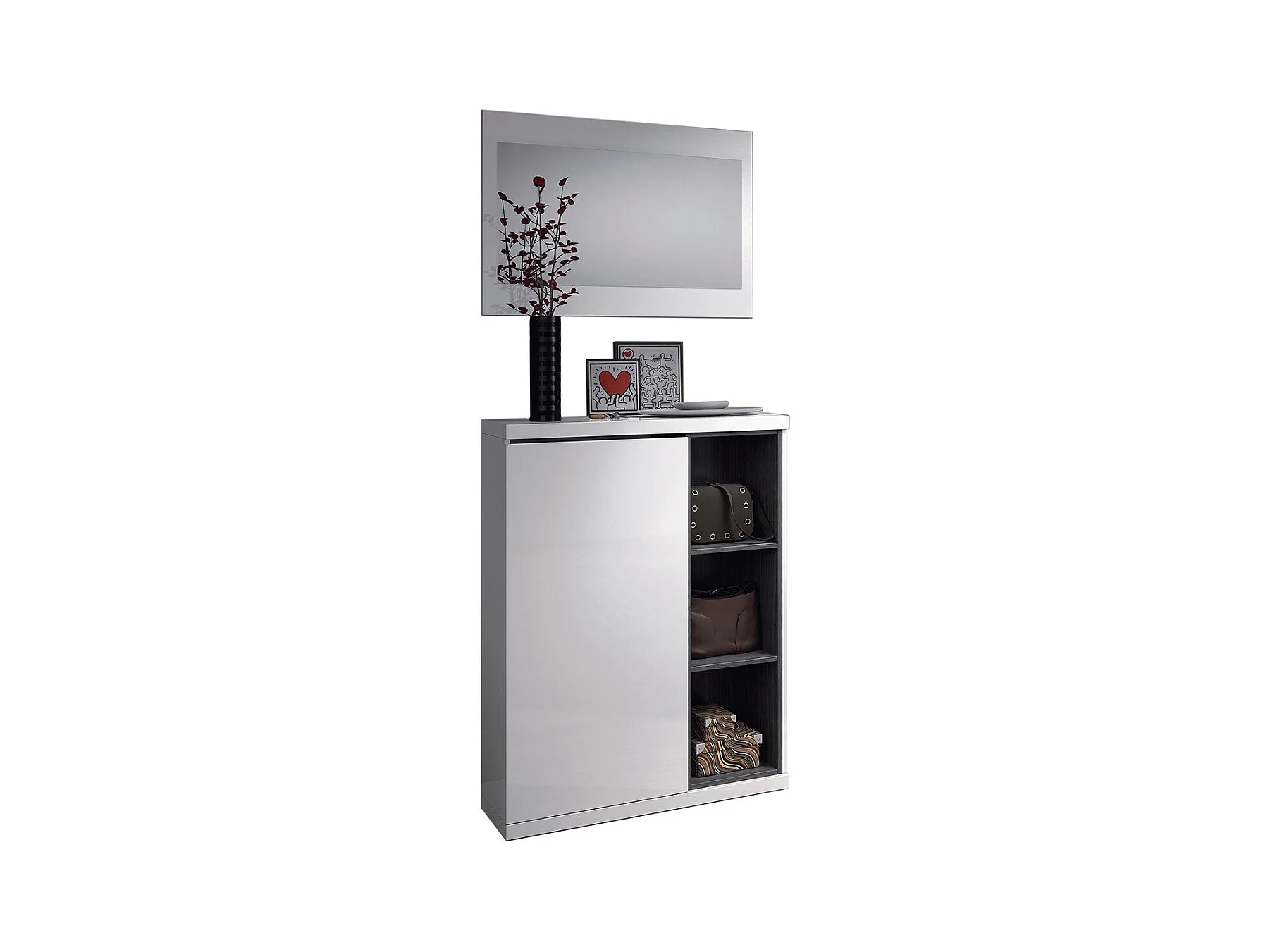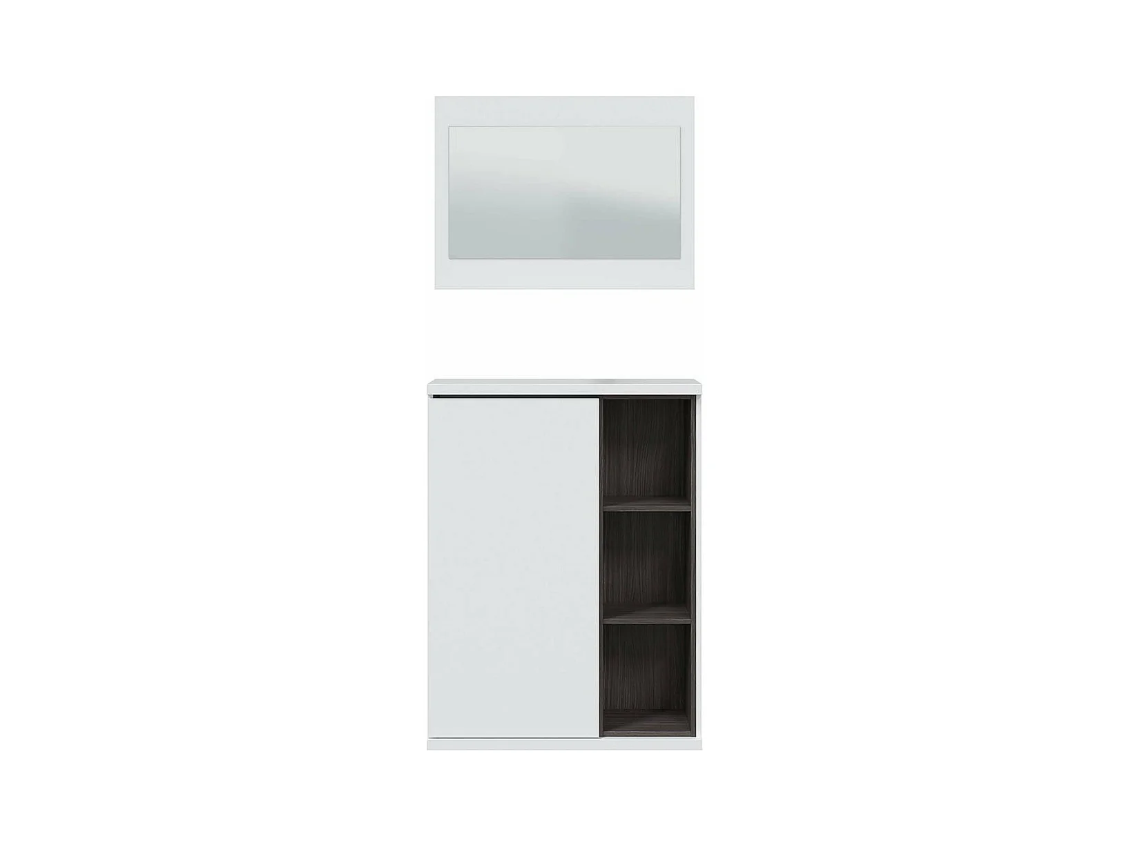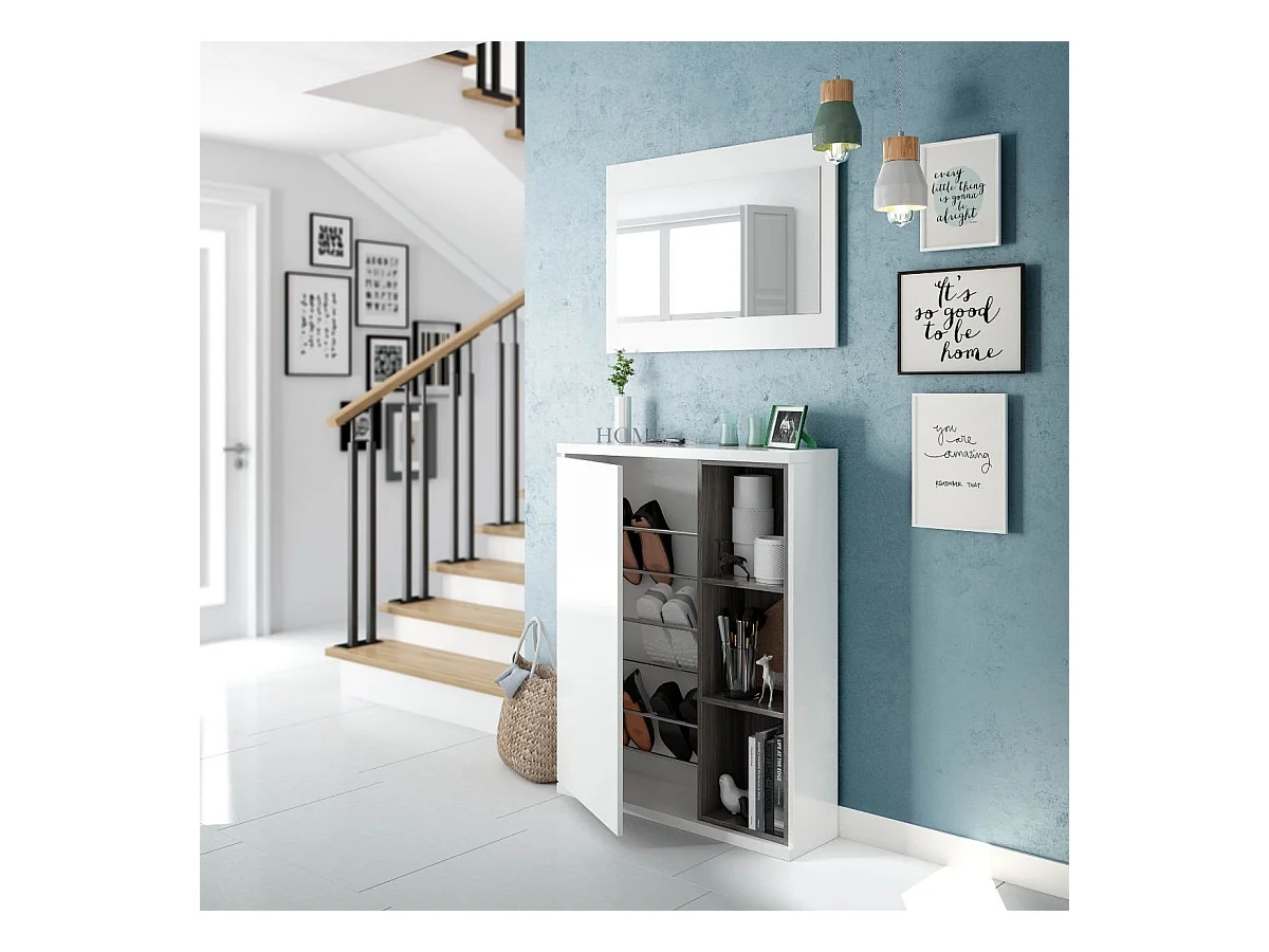 Meuble d'entrée 1 porte avec rangement chaussures et miroir Adhara - L108 cm