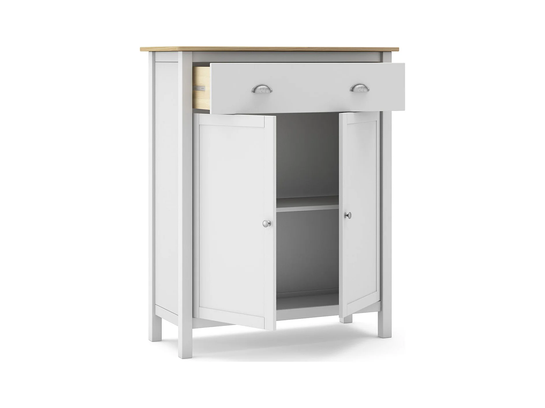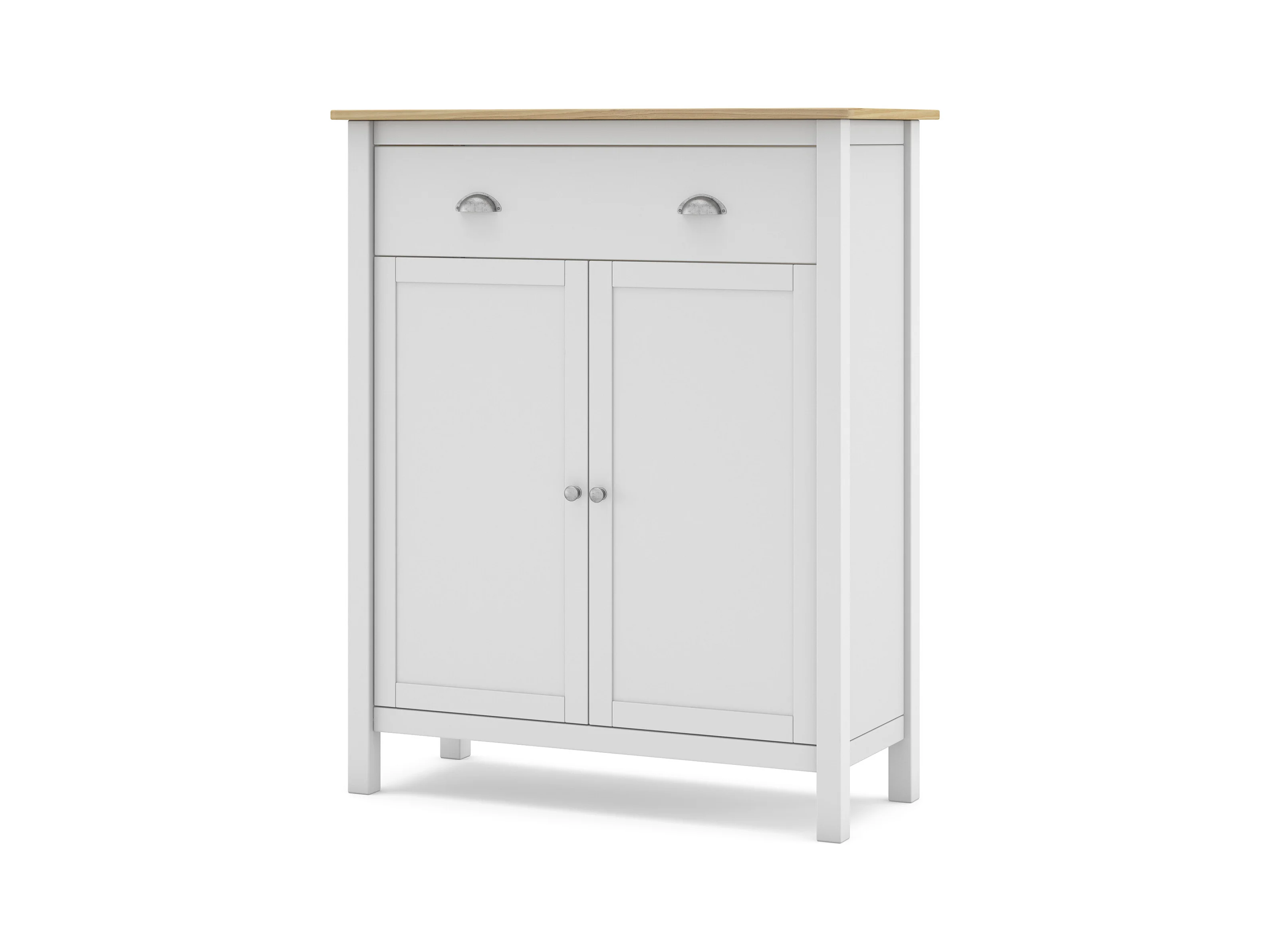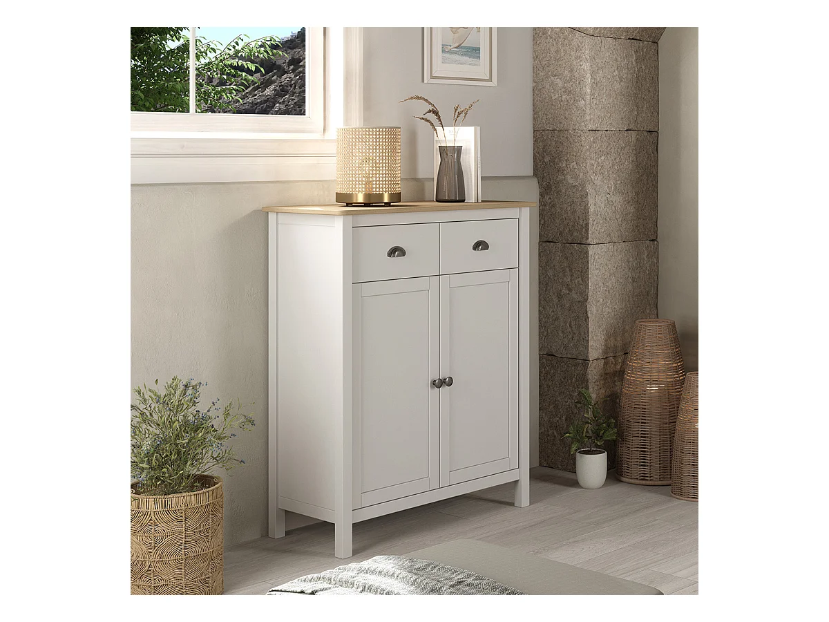 Meuble d'entrée 2 portes 1 tiroir en pin massif blanc / effet chêne 90 cm - Macha