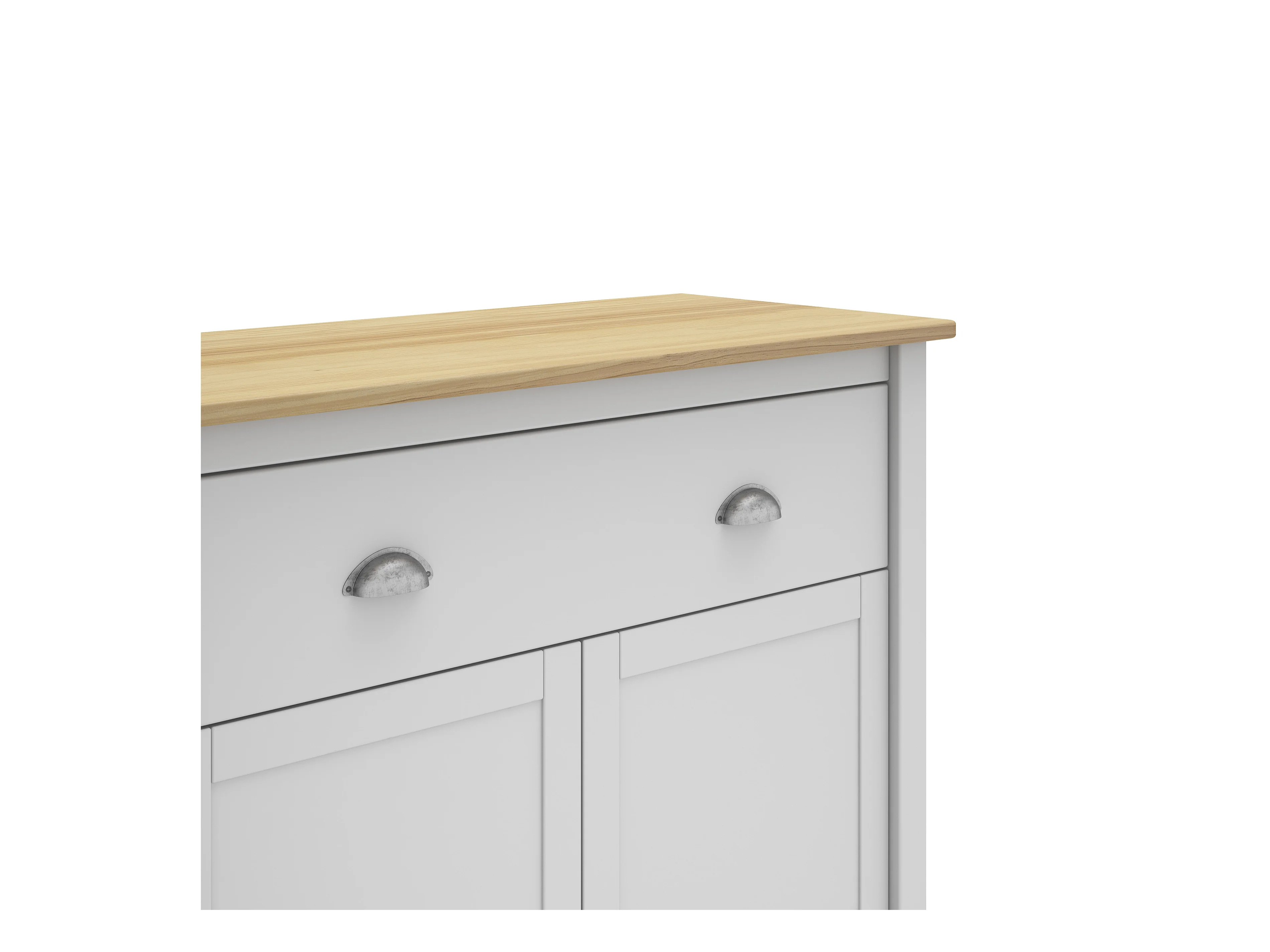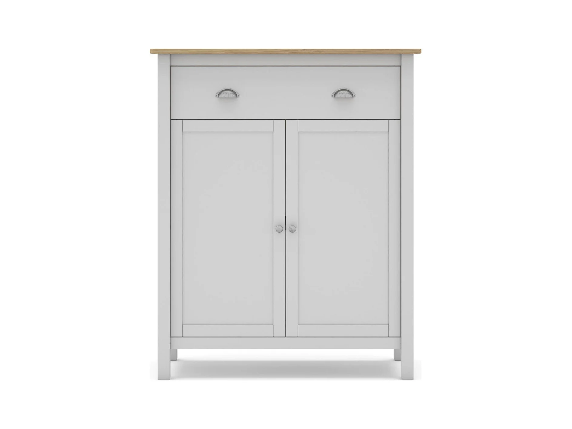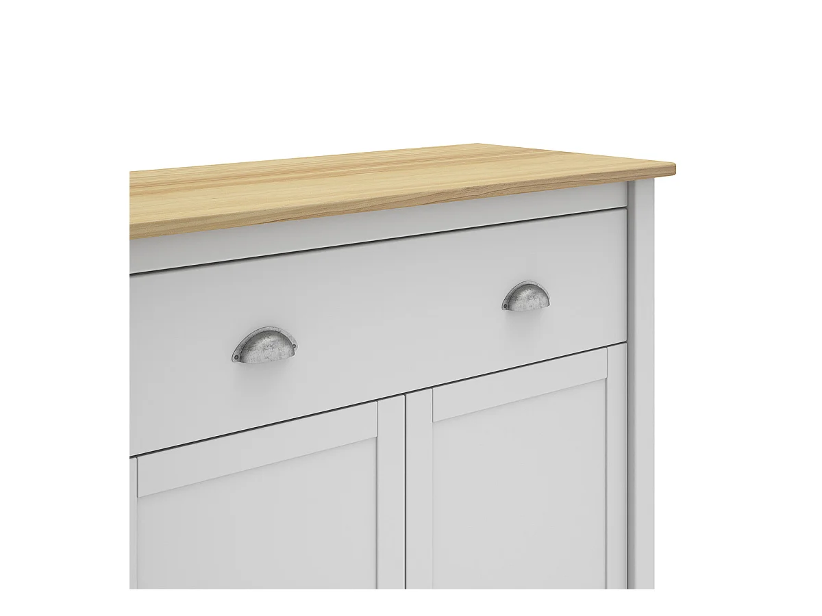 Meuble d'entrée 2 portes 1 tiroir en pin massif blanc / effet chêne 90 cm - Macha