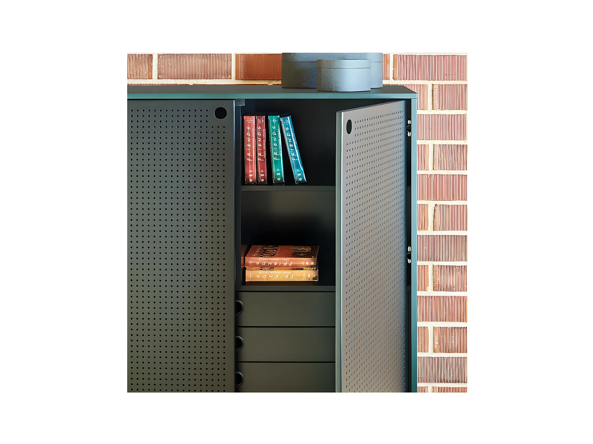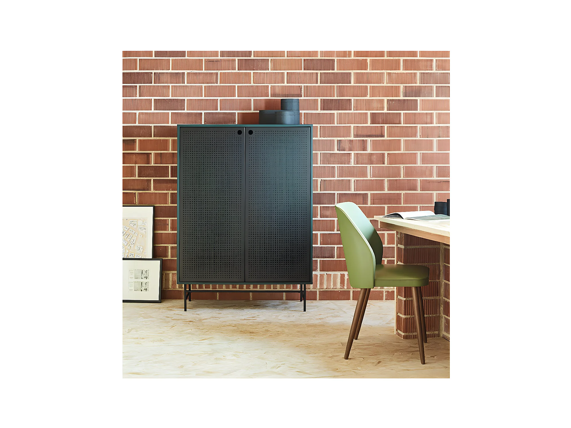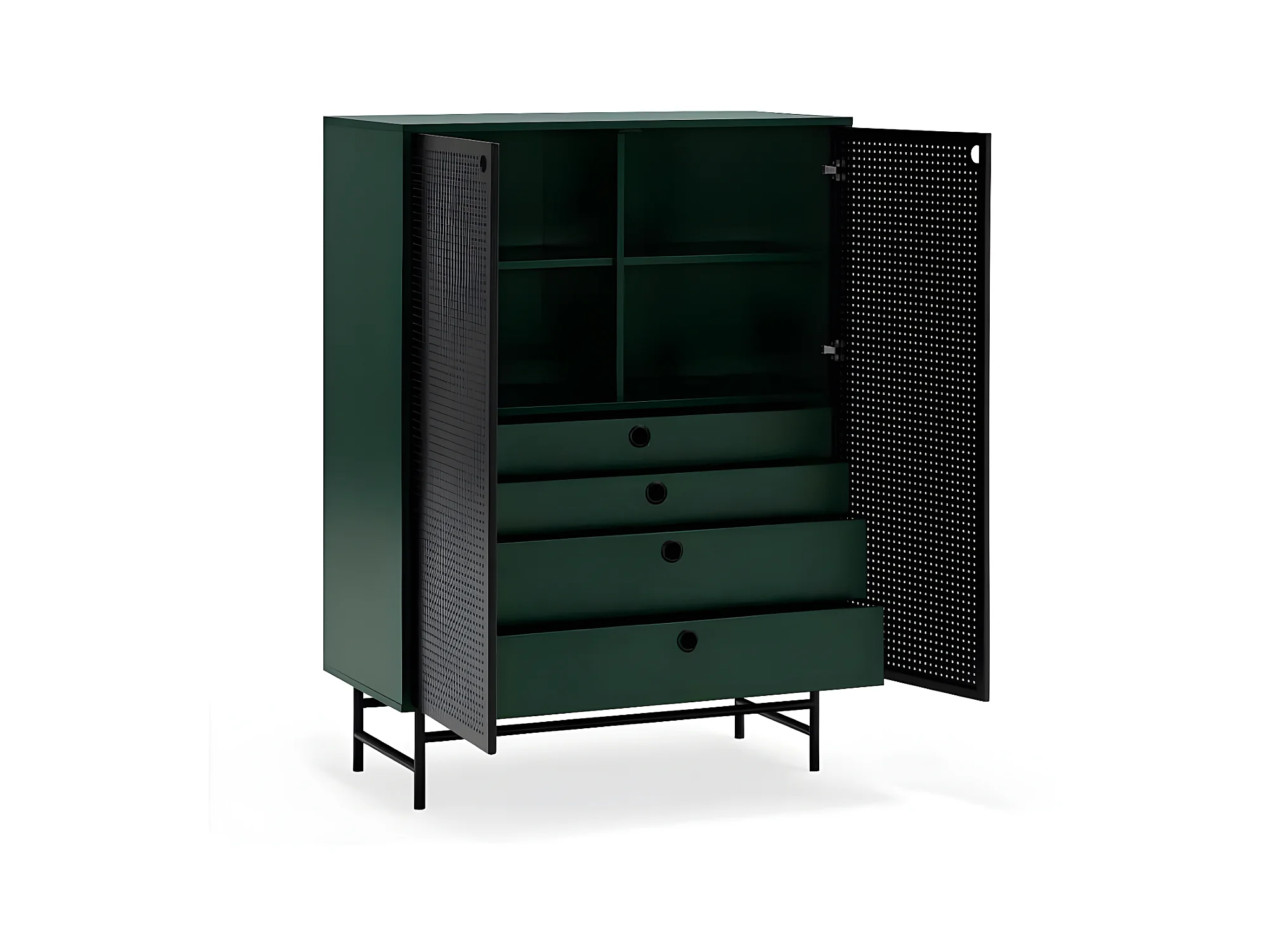 Meuble d'entrée 2 portes 4 tiroirs Vert/Noir - TEULAT PUNTO