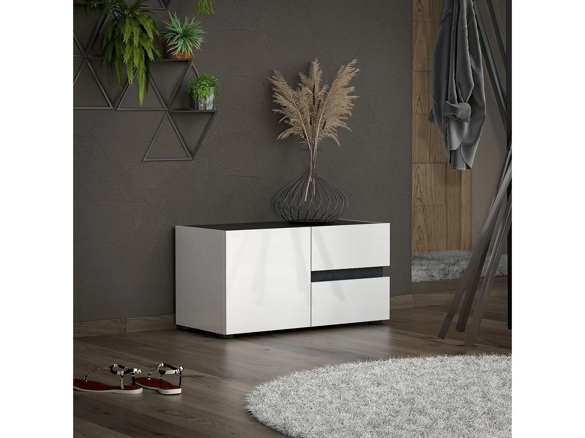 Mobile da ingresso Seul, Entratina appendiabiti, Composizione per atrio, Consolle portaoggetti multifunzione, Made in Italy, 80x38h42 cm, Bianco lucido e Antracite
