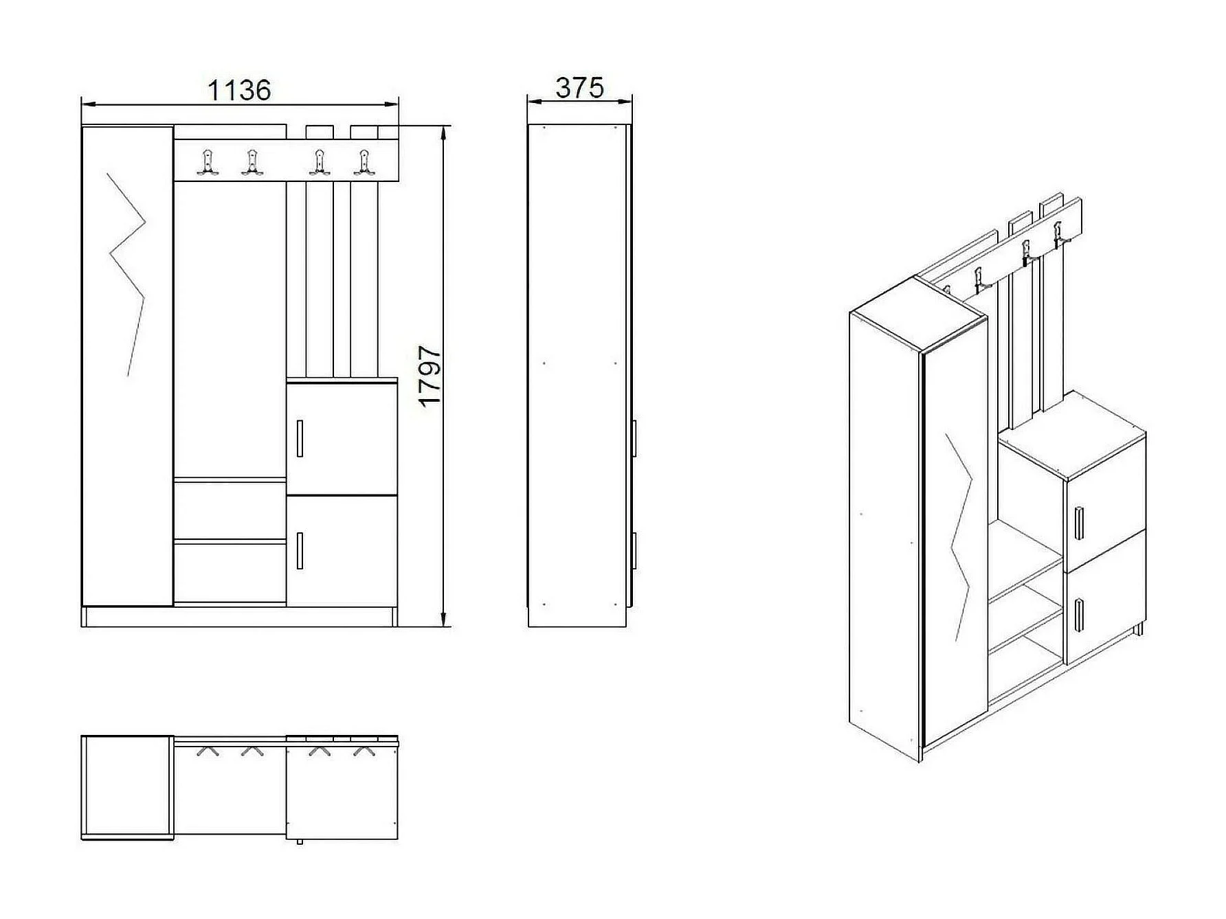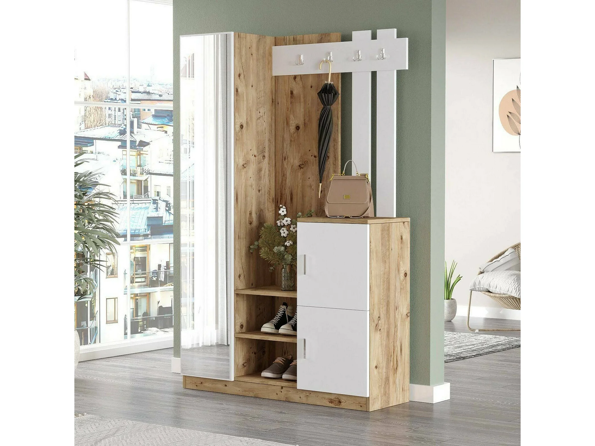 Meuble d'entrée Australis, Crochet d'entrée, Composition pour l'atrium, Console de rangement multifonction, 114x38h180 cm, Chêne et Blanc