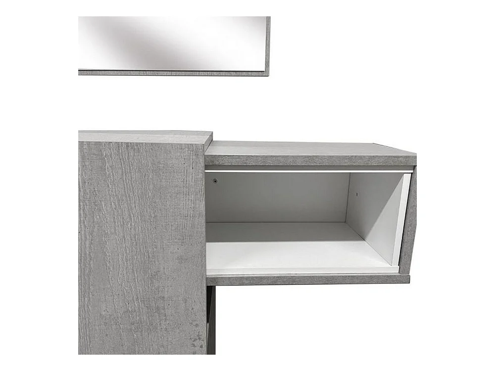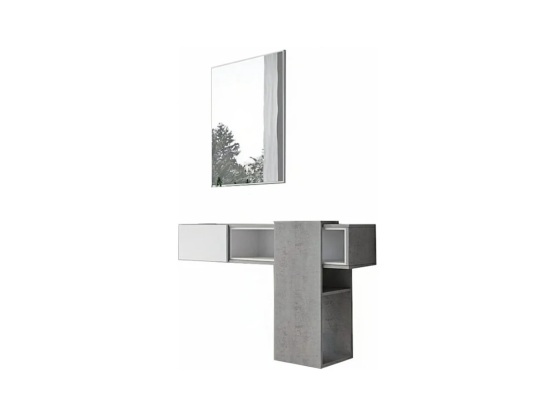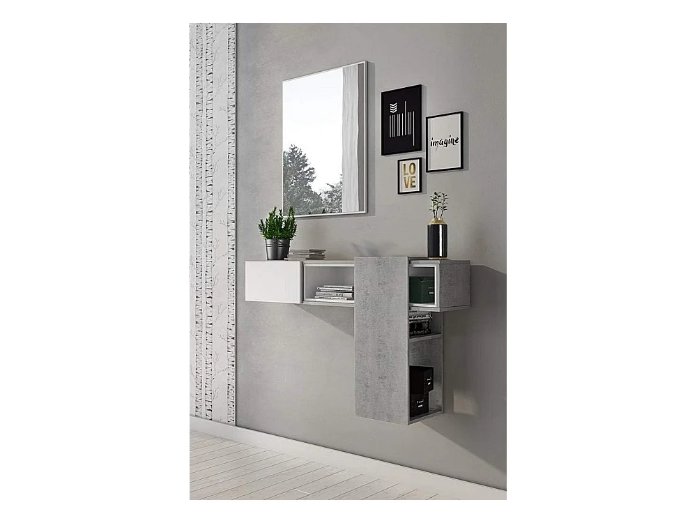 Meuble d'entrée Dpinz, Entrée suspendue, Élément mural avec miroir, Vide poche d'entrée avec tiroir et miroir, 100x27h75 cm, Ciment et Blanc