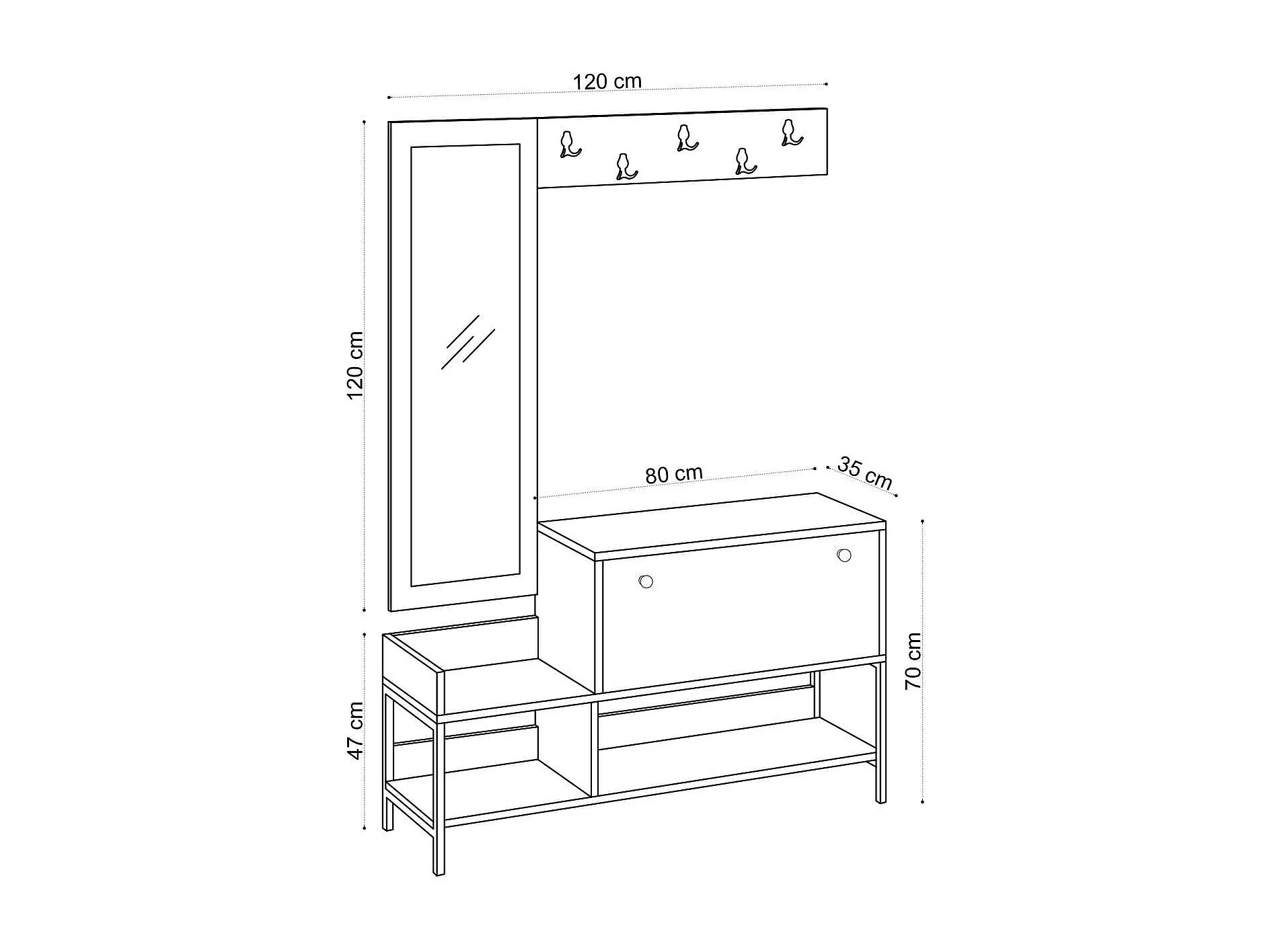 Meuble d'entrée avec miroir et patère murale effet Chêne - Sella