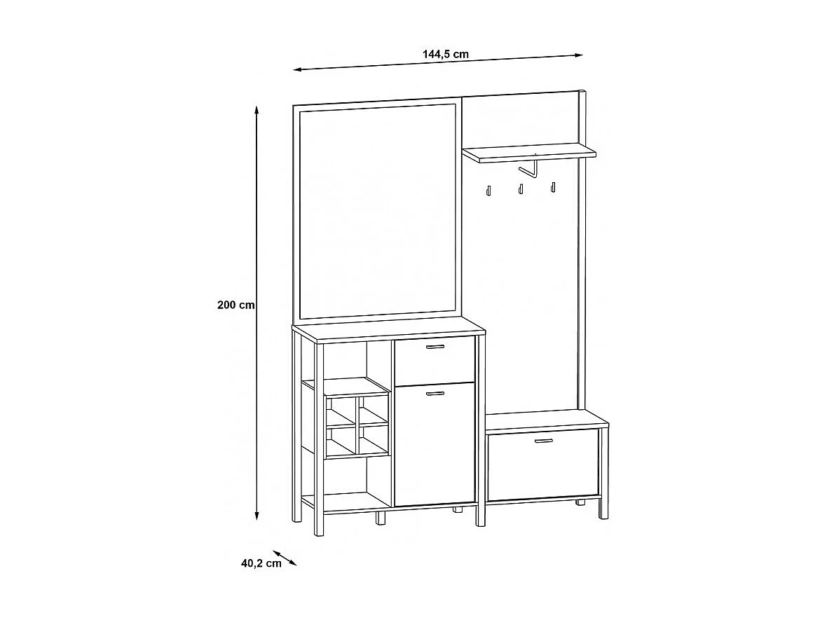 Meuble d'entrée avec miroir et rangements décor bois et noir - MODE