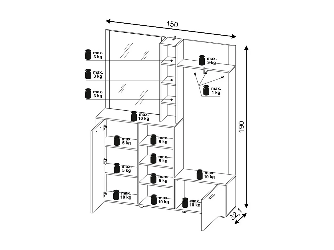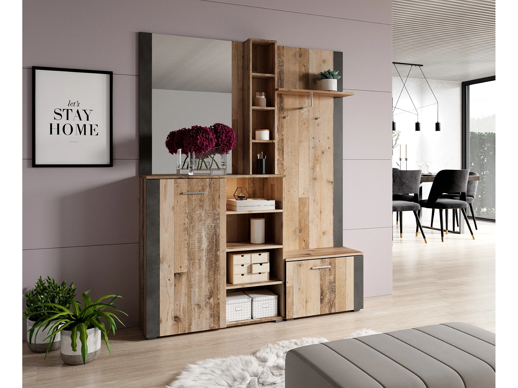 Meuble d'entrée Barry old style light / anthracite 150 cm
