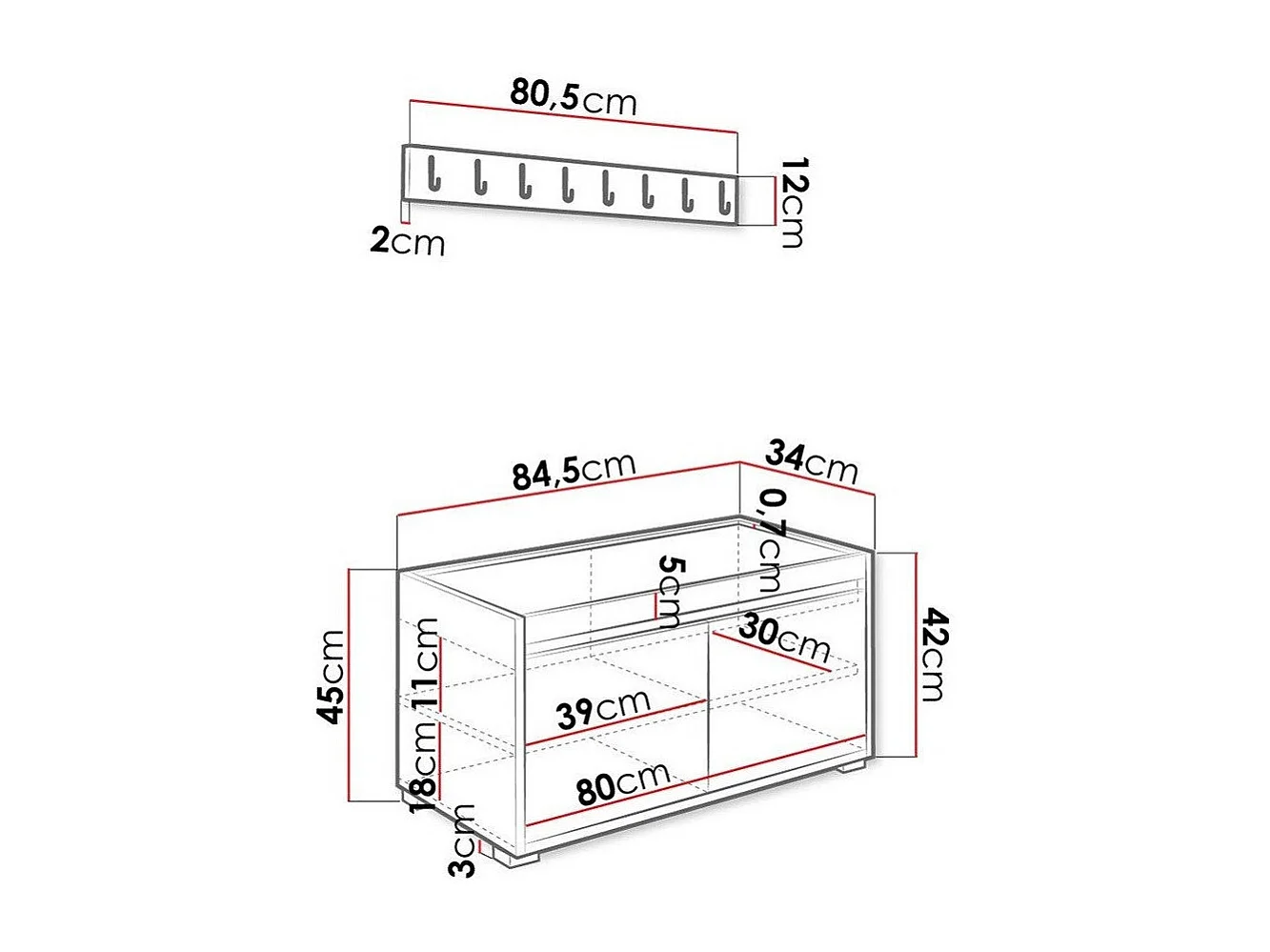 Meuble d'entrée Comfivo 392, 207x85x34cm, Stratifié|Faux cuir, Murale|À poser