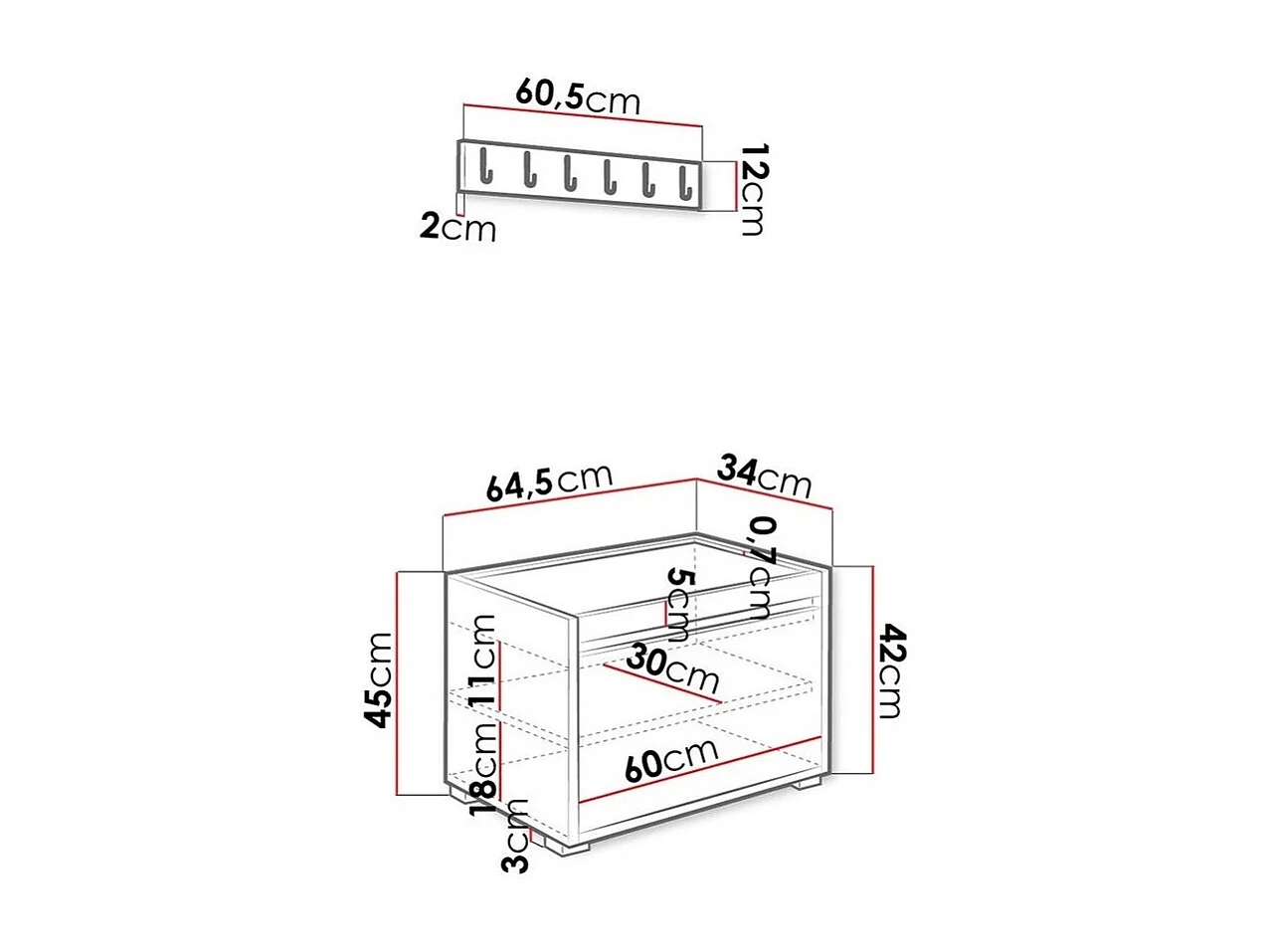 Meuble d'entrée Comfivo 395, 207x65x34cm, Faux cuir|Stratifié, À poser|Murale