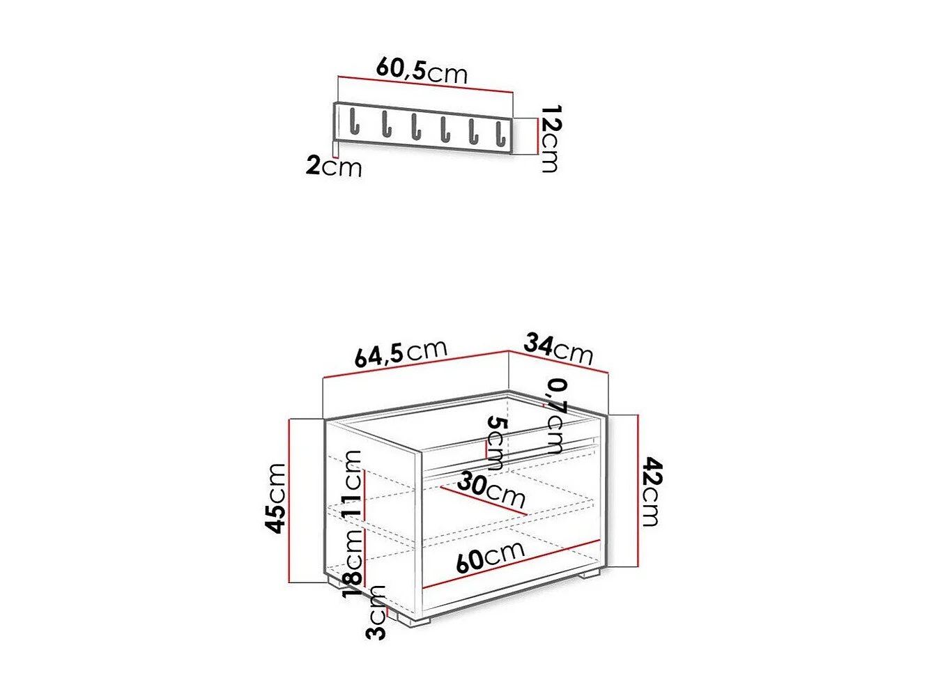 Meuble d'entrée Comfivo 399, 65x34cm, Blanc, Faux cuir|Stratifié, À poser|Murale