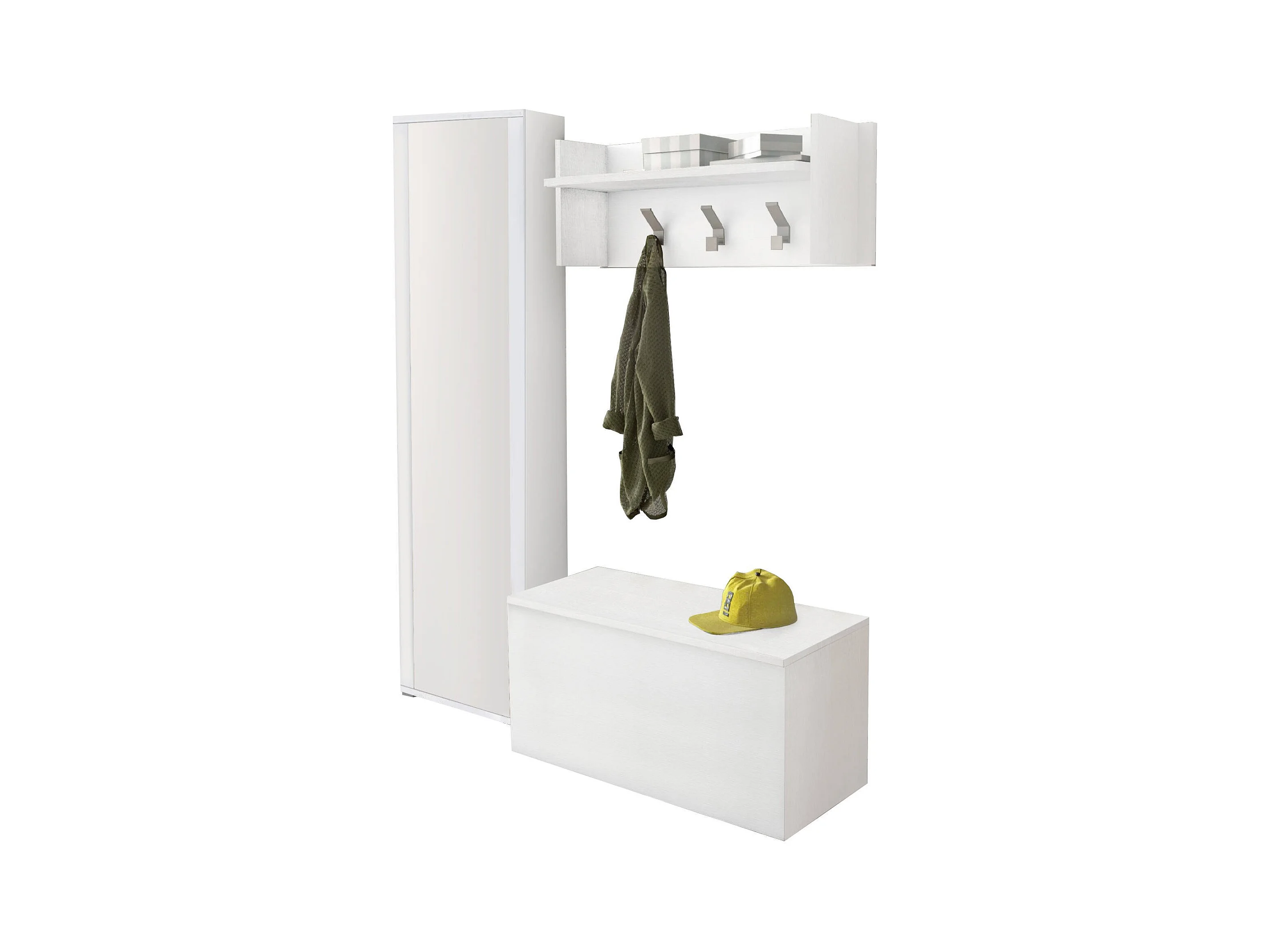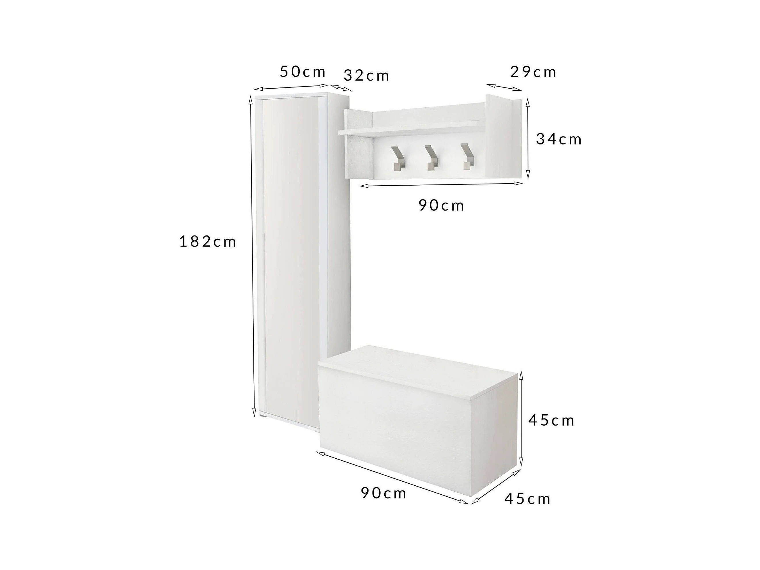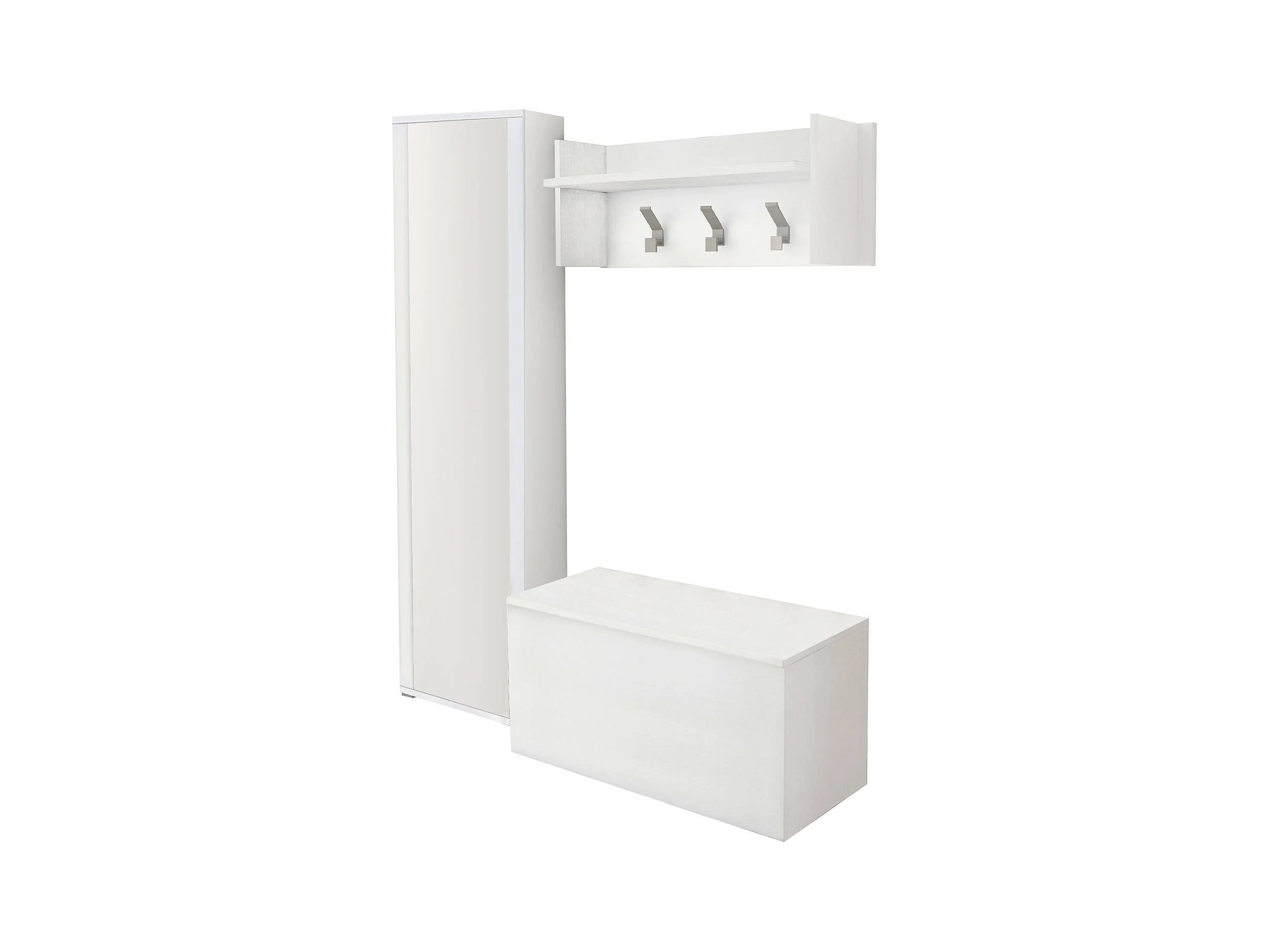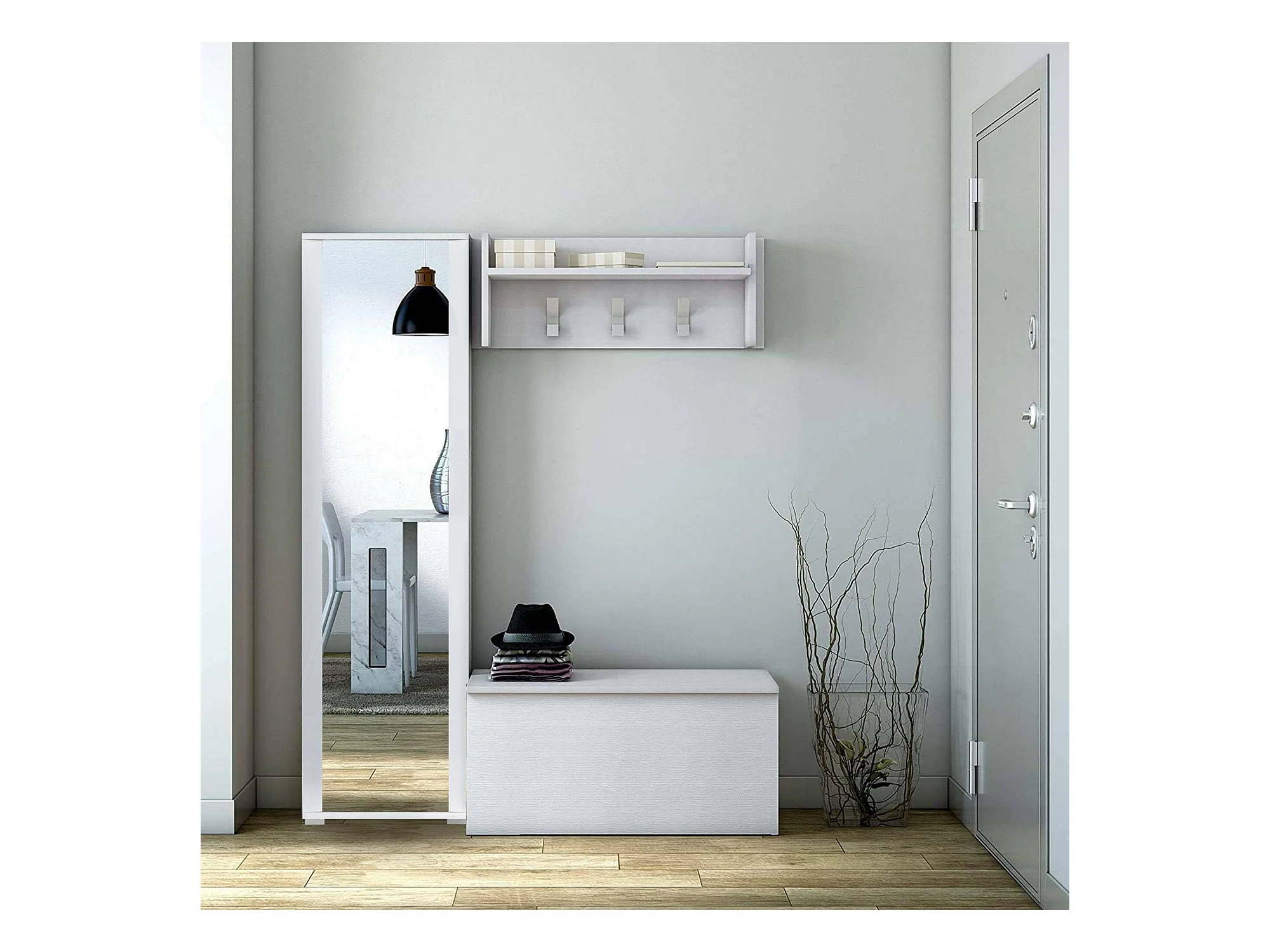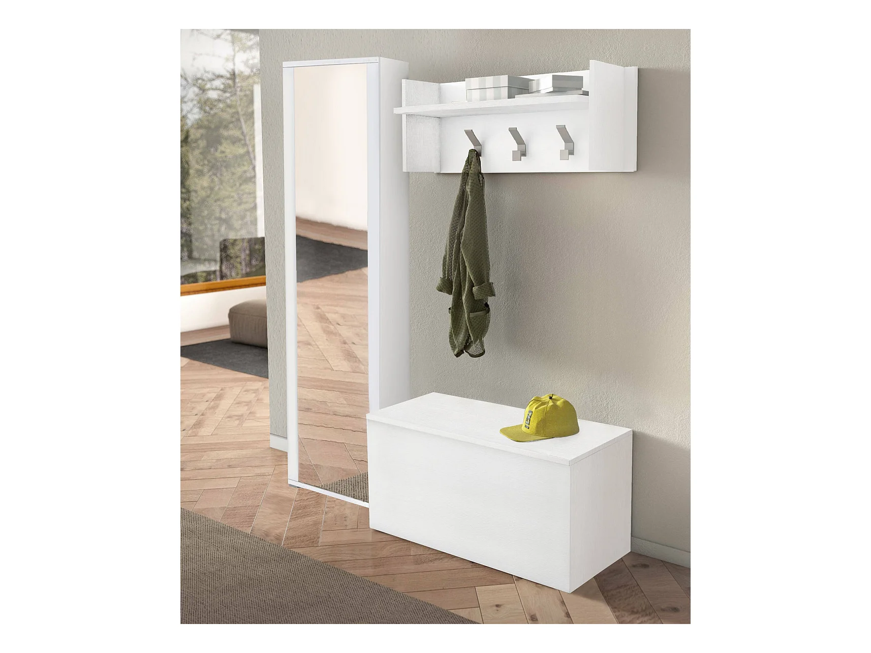 Meuble d'entrée Djohnse, Entrée moderne avec portemanteau, Armoire avec étagère à chaussures, Armoire avec miroir, Cm 50x32h182, Blanc