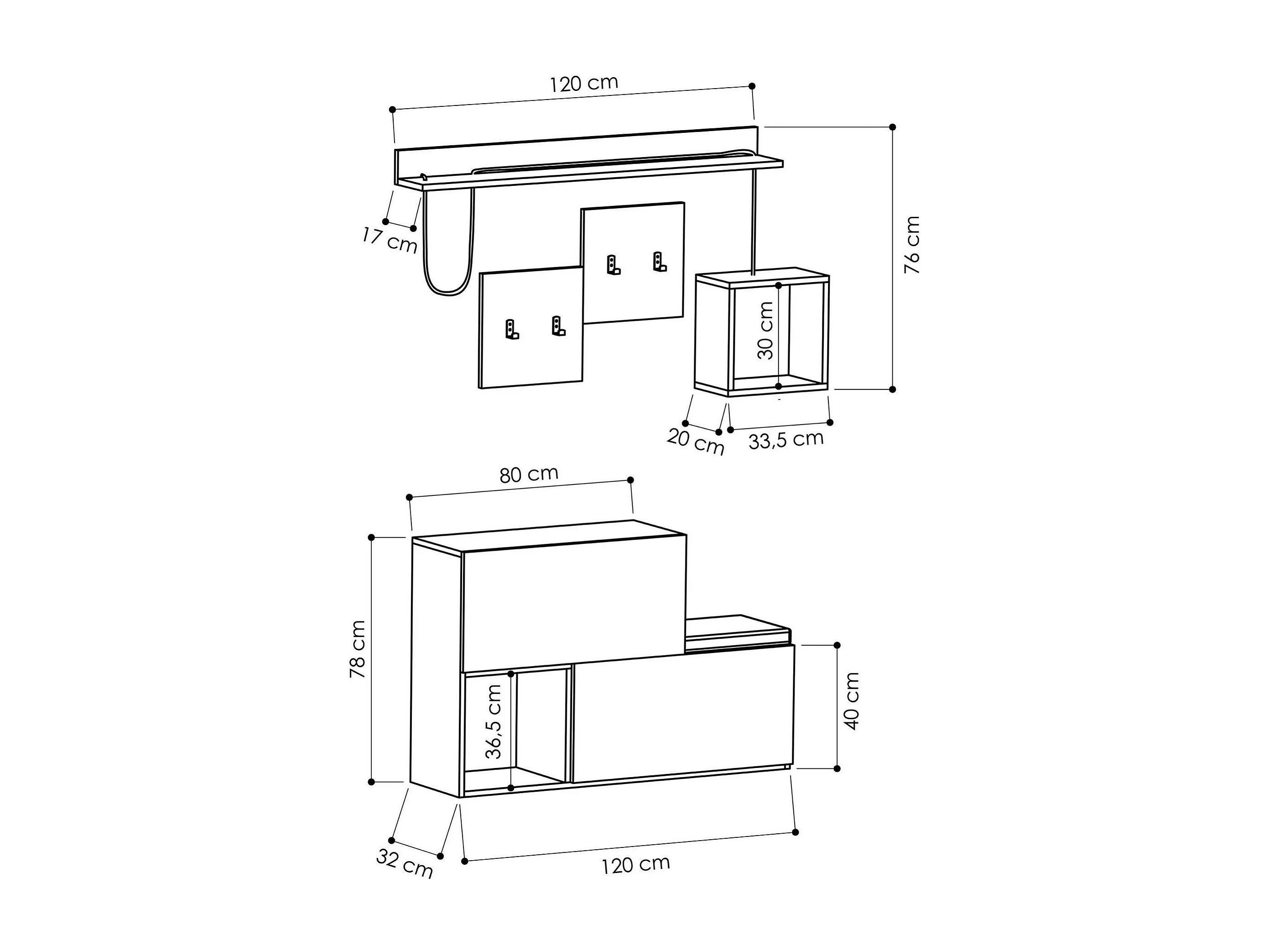 Meuble d'entrée en bois "Holdon" - 120 x 32 x 78 cm - Gris anthracite