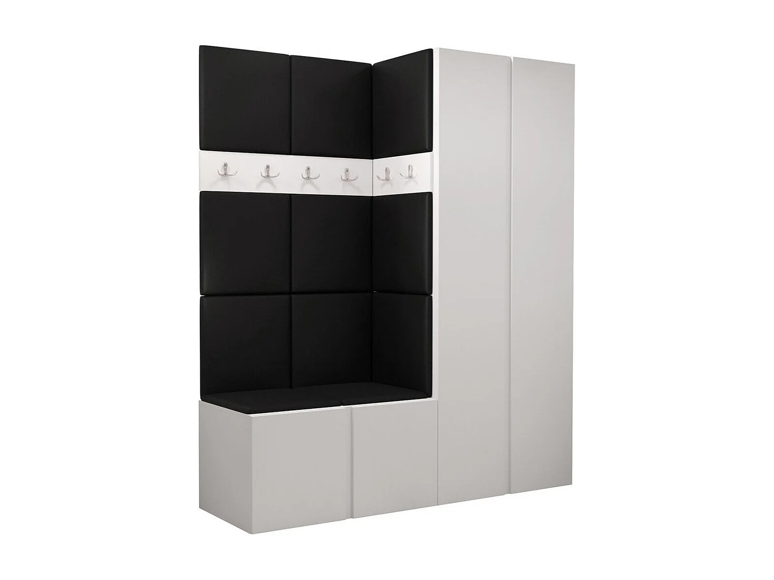 Meuble d'entrée Hartford 266, 186x158x46cm, Blanc, Faux cuir|Stratifié, Murale|À poser