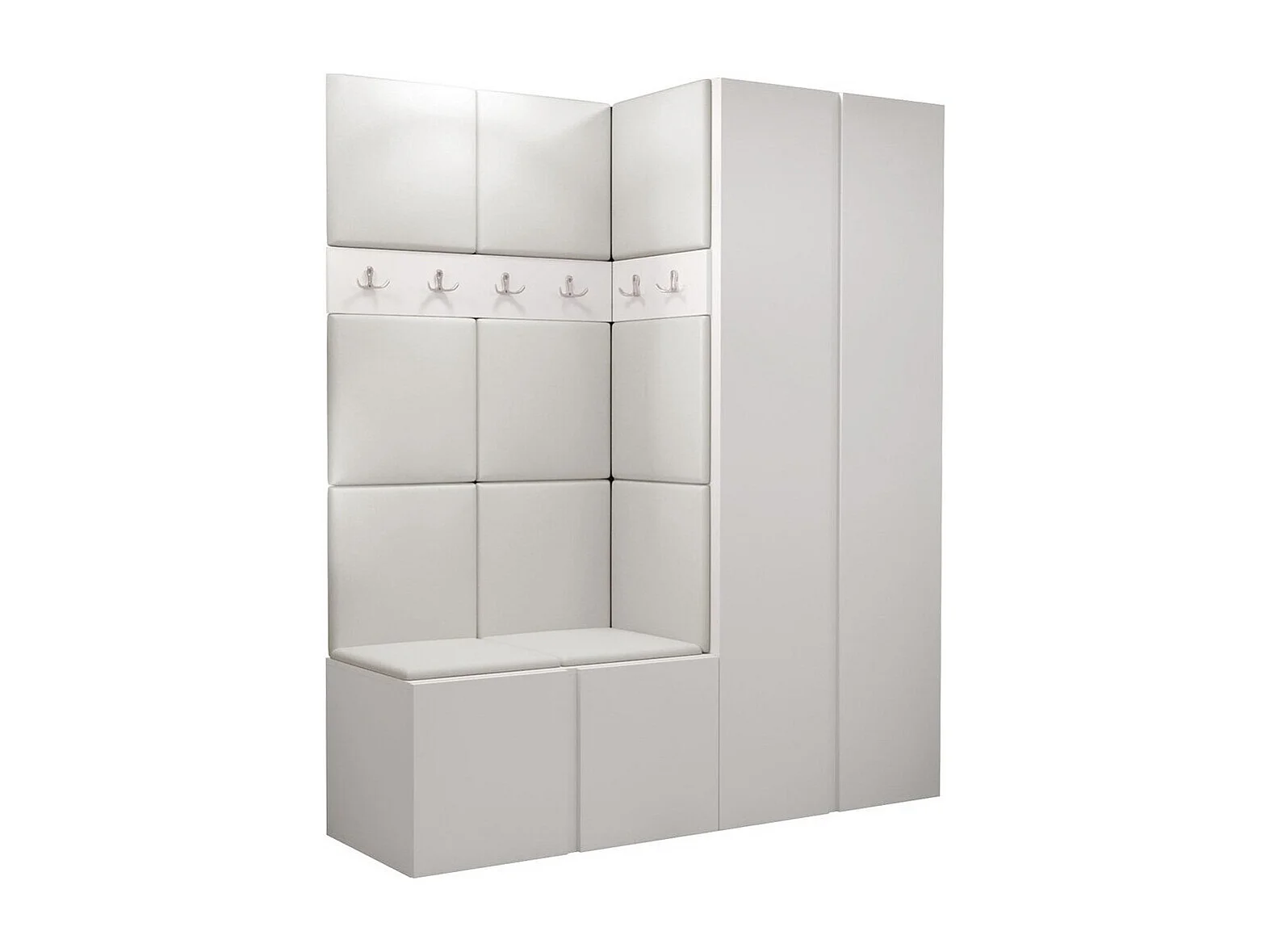 Meuble d'entrée Hartford 266, 186x158x46cm, Blanc, Stratifié|Faux cuir, Murale|À poser