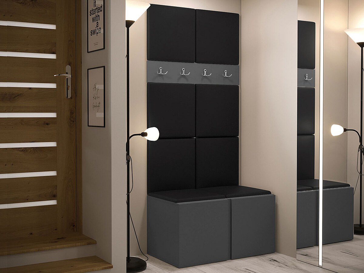 Meuble d'entrée Hartford 267, 186x84x44cm, Graphite, Stratifié|Faux cuir