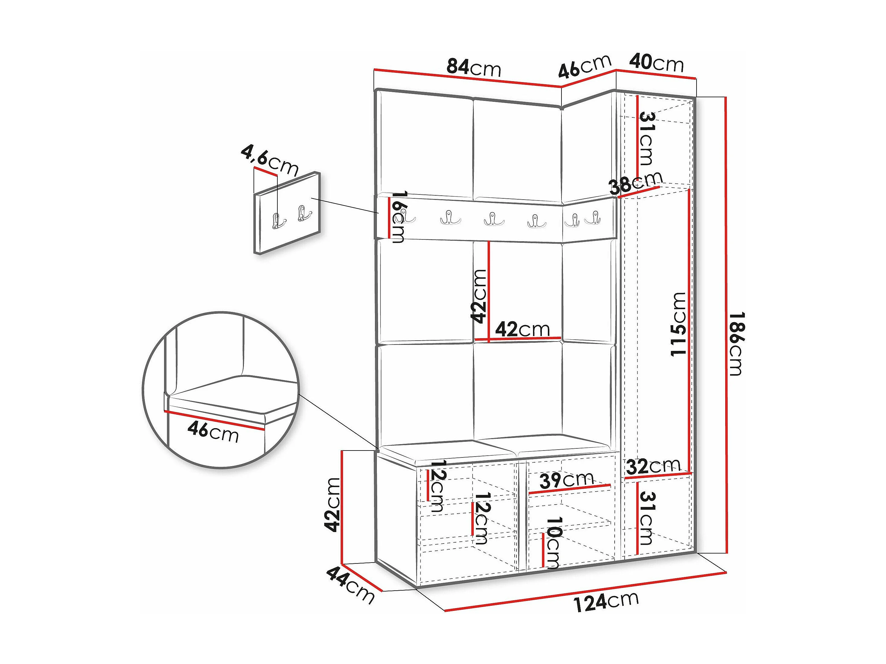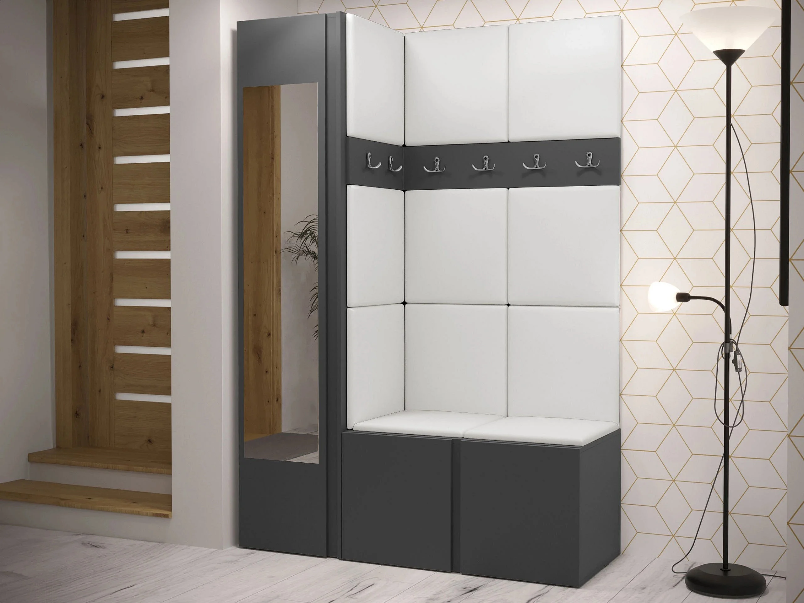 Meuble d'entrée Hartford 277, 186x124x46cm, Disponible, Graphite, Faux cuir|Stratifié