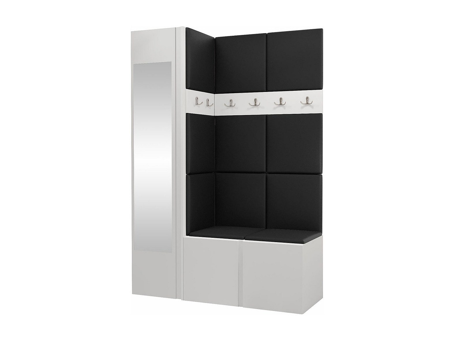 Meuble d'entrée Hartford 277, 186x124x46cm, Miroir, Blanc, Stratifié|Faux cuir