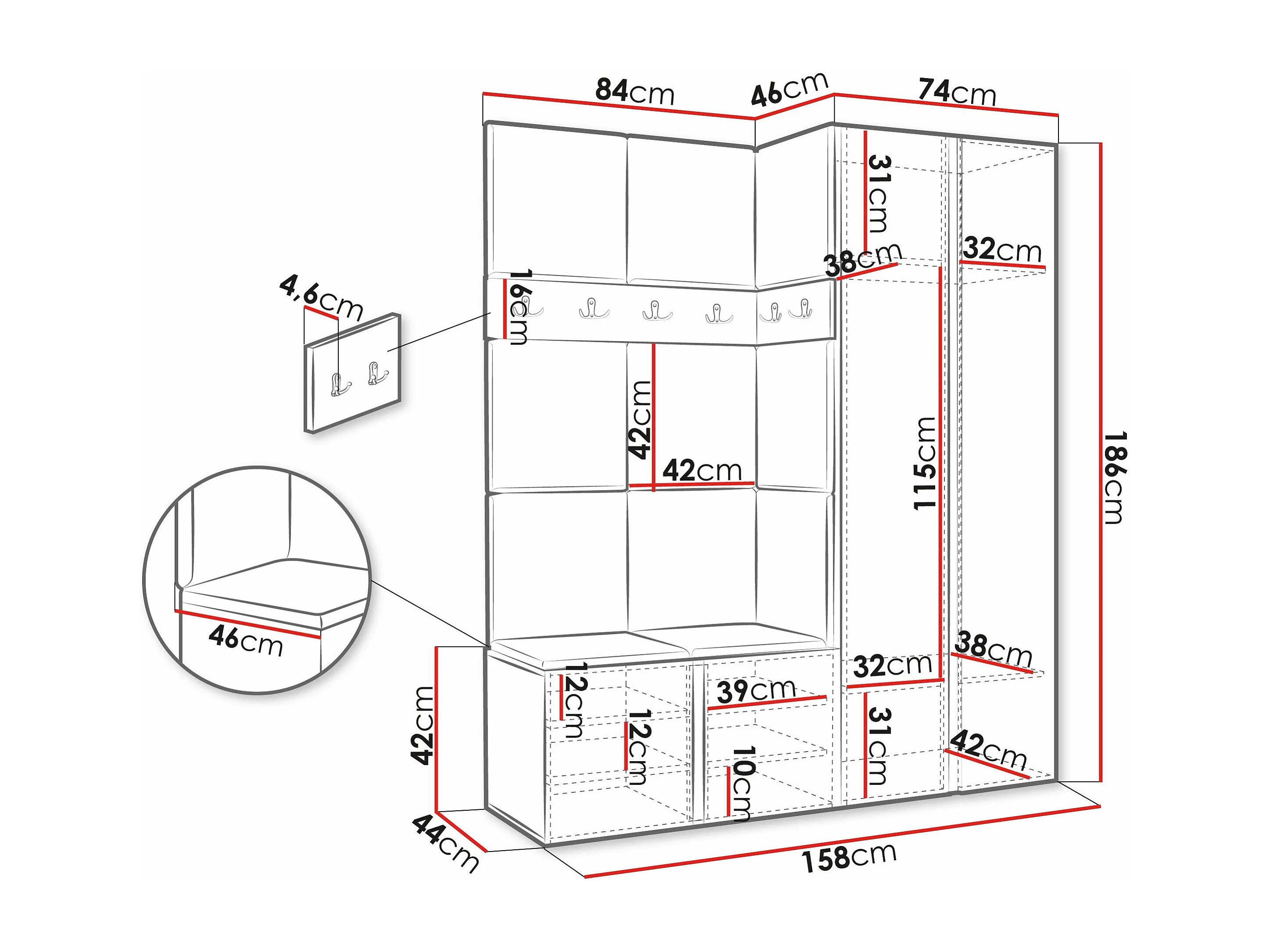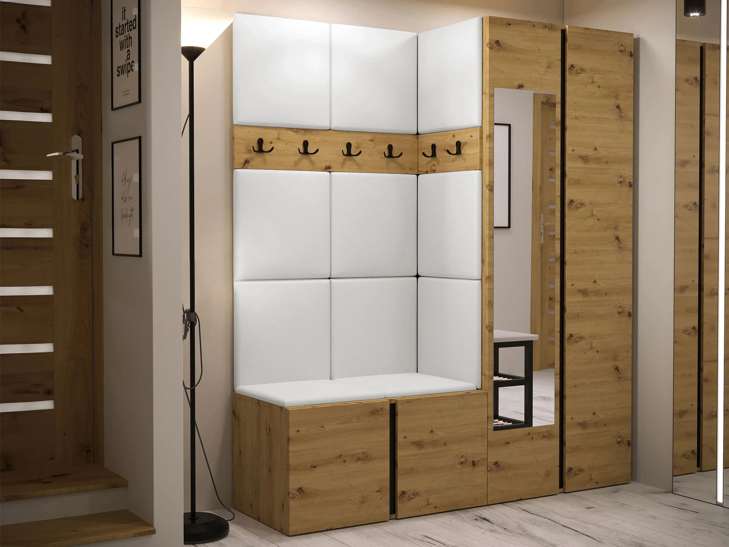 Meuble d'entrée Hartford 278, 186x158x46cm, Disponible, Chêne Artisan, Murale|À poser