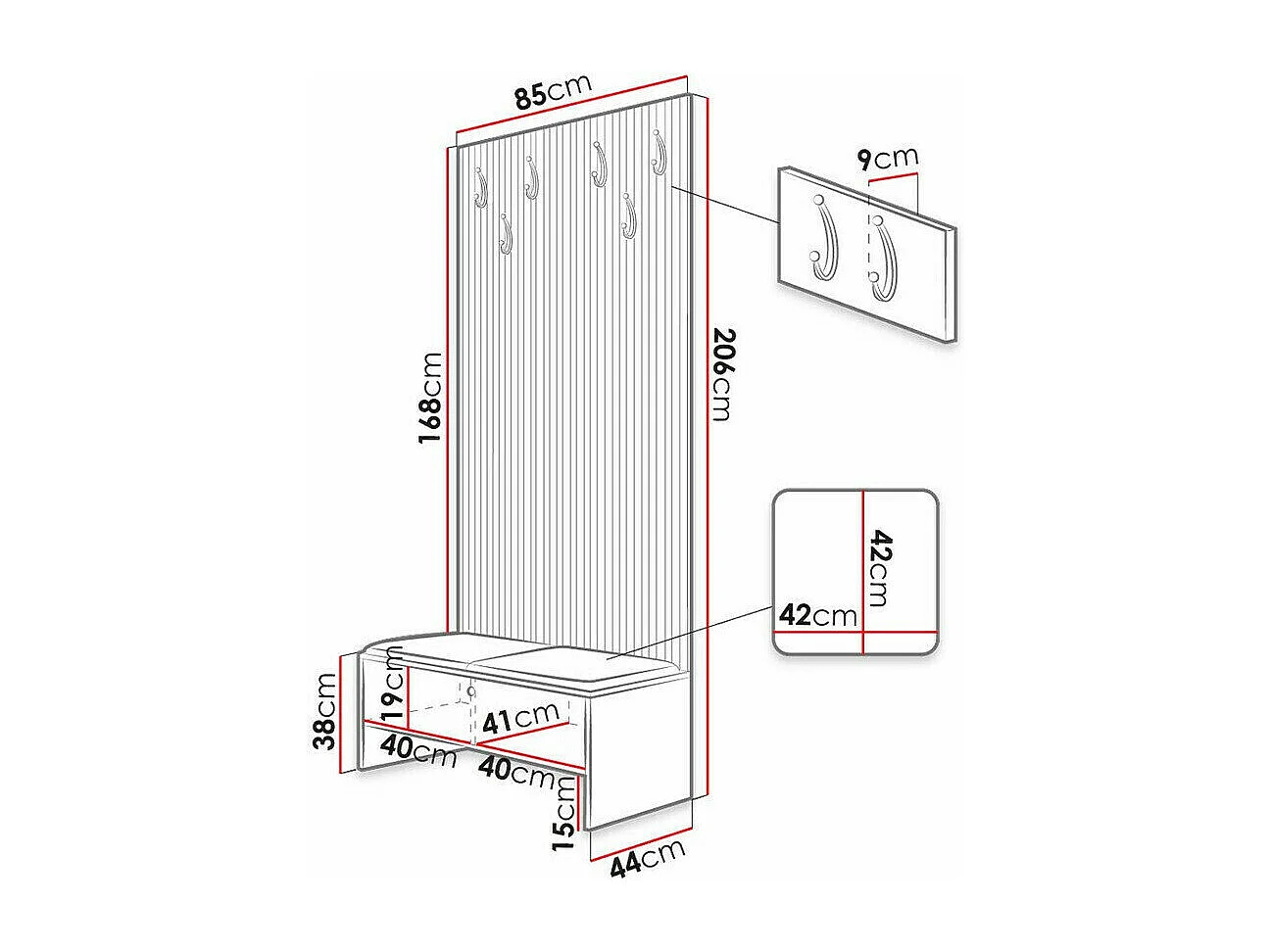 Meuble d'entrée Donio IV, 206x85x44cm, Noir|Chêne Artisan, Stratifié|Tissu, À poser