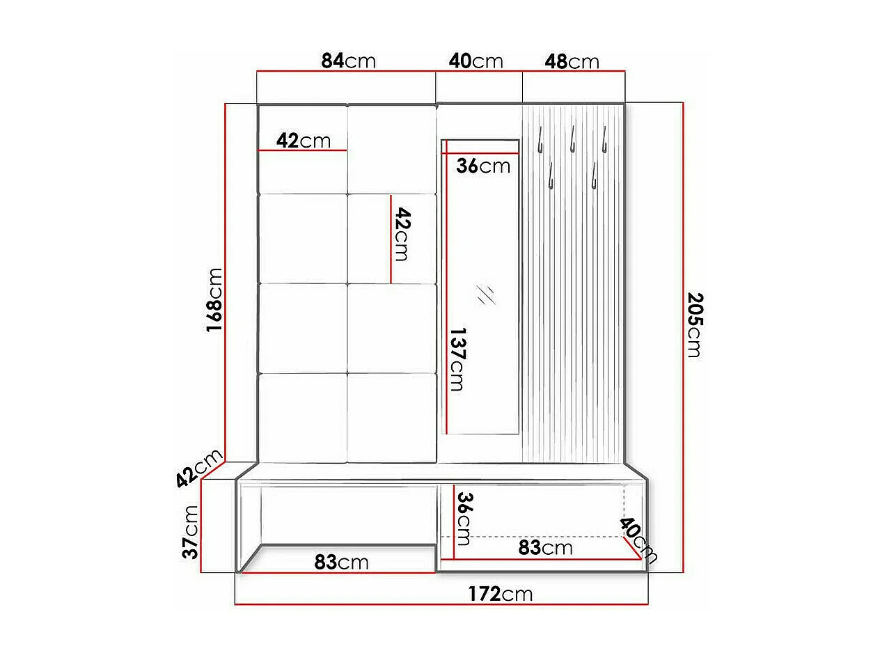 Meuble d'entrée Hartford 322, 205x172x42cm, Disponible, Chêne Artisan|Noir, À poser