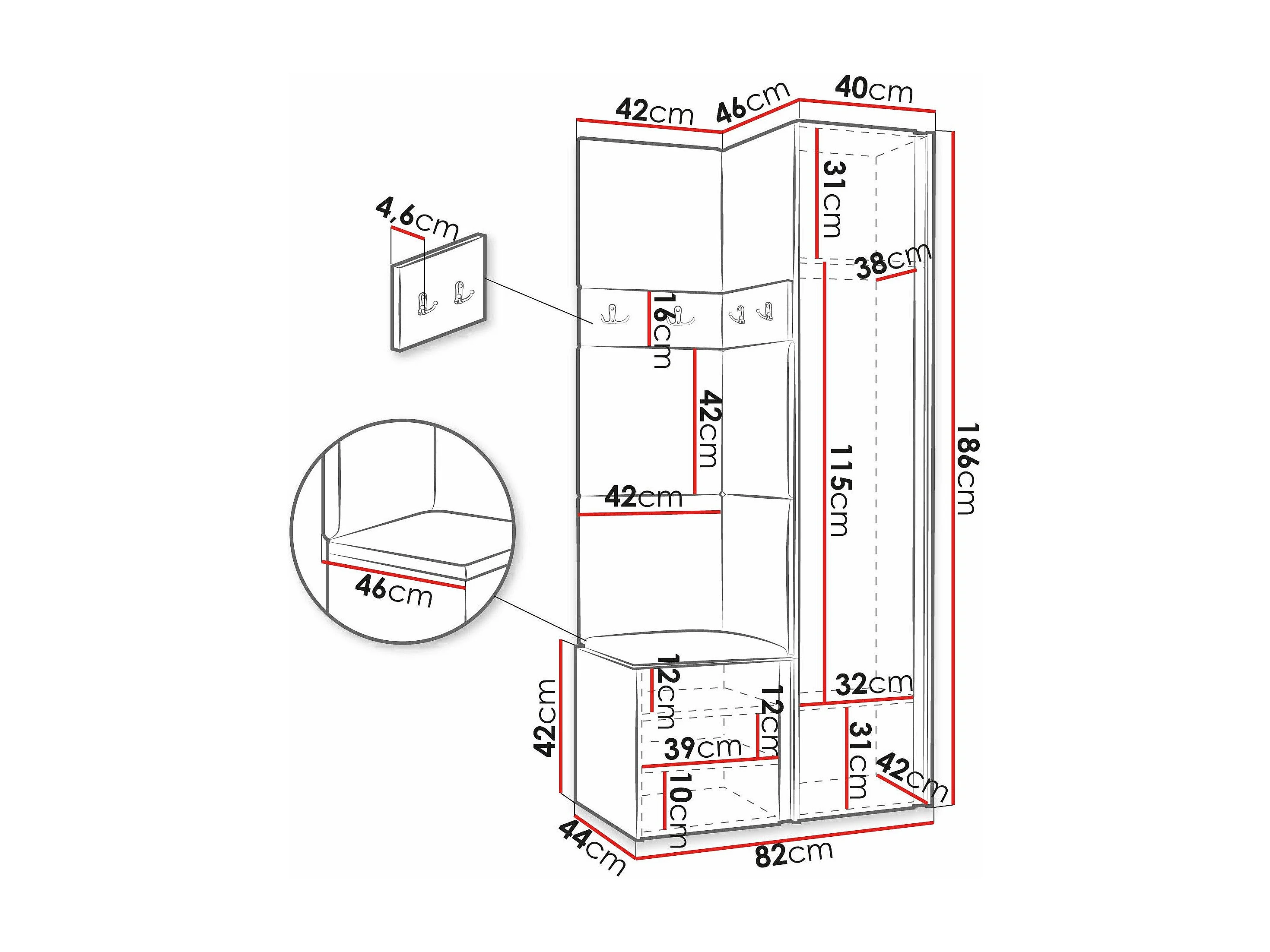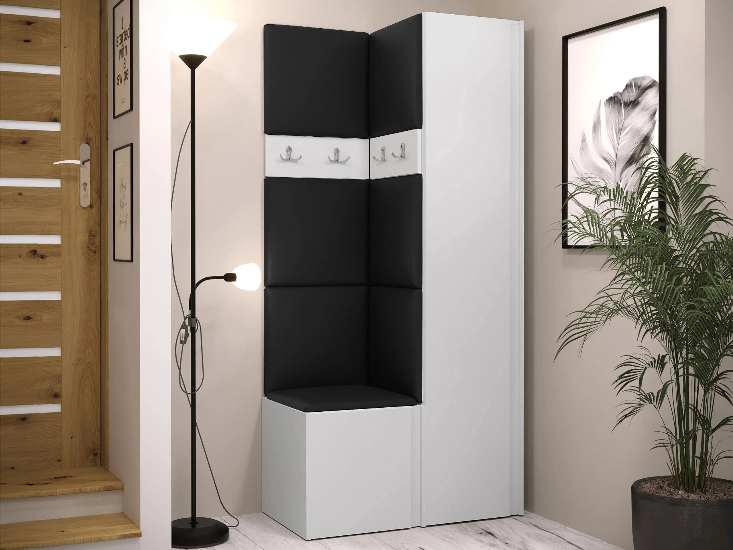 Meuble d'entrée Pinis XXIV, 186x82x46cm, Blanc, Stratifié|Faux cuir, À poser|Murale