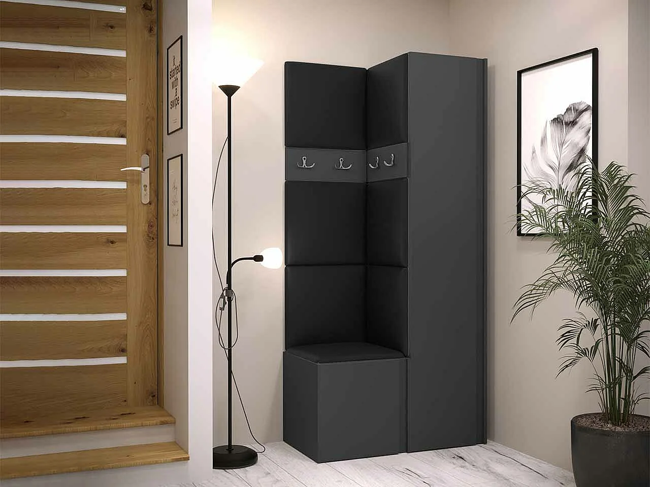 Meuble d'entrée Hartford 348, 186x82x44cm, Graphite, Faux cuir|Stratifié, À poser|Murale