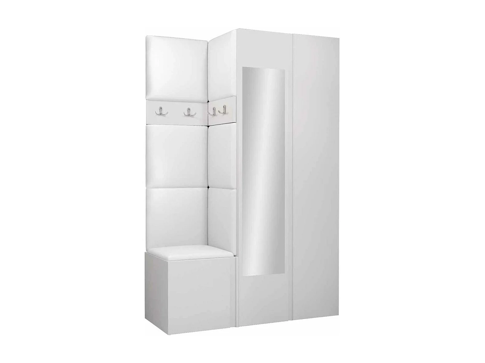 Meuble d'entrée Hartford 350, 186x116x44cm, Disponible, Blanc, Faux cuir|Stratifié