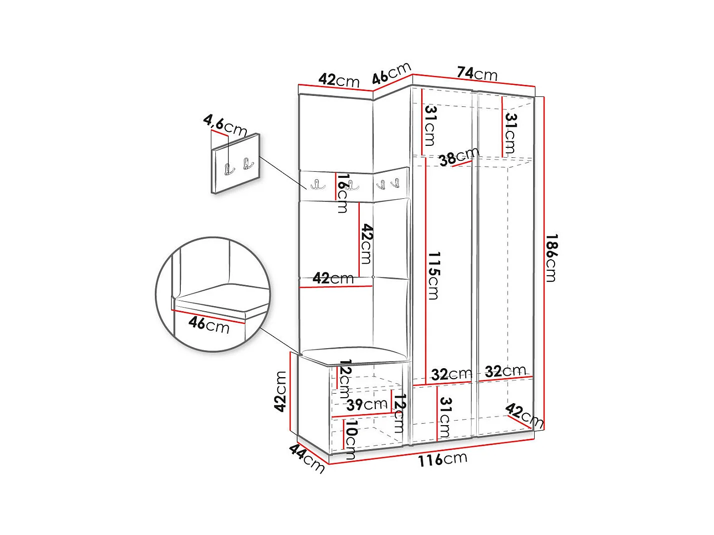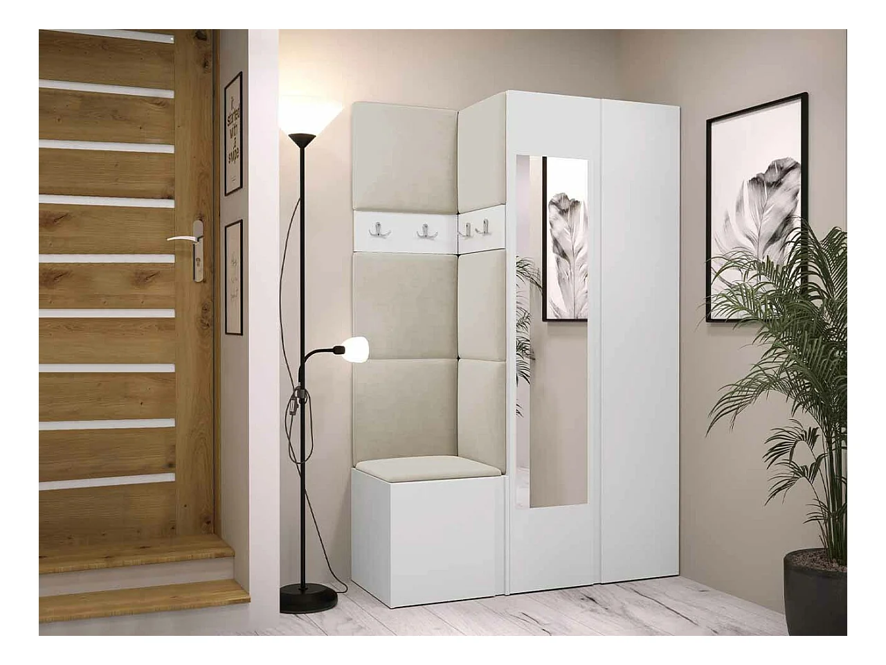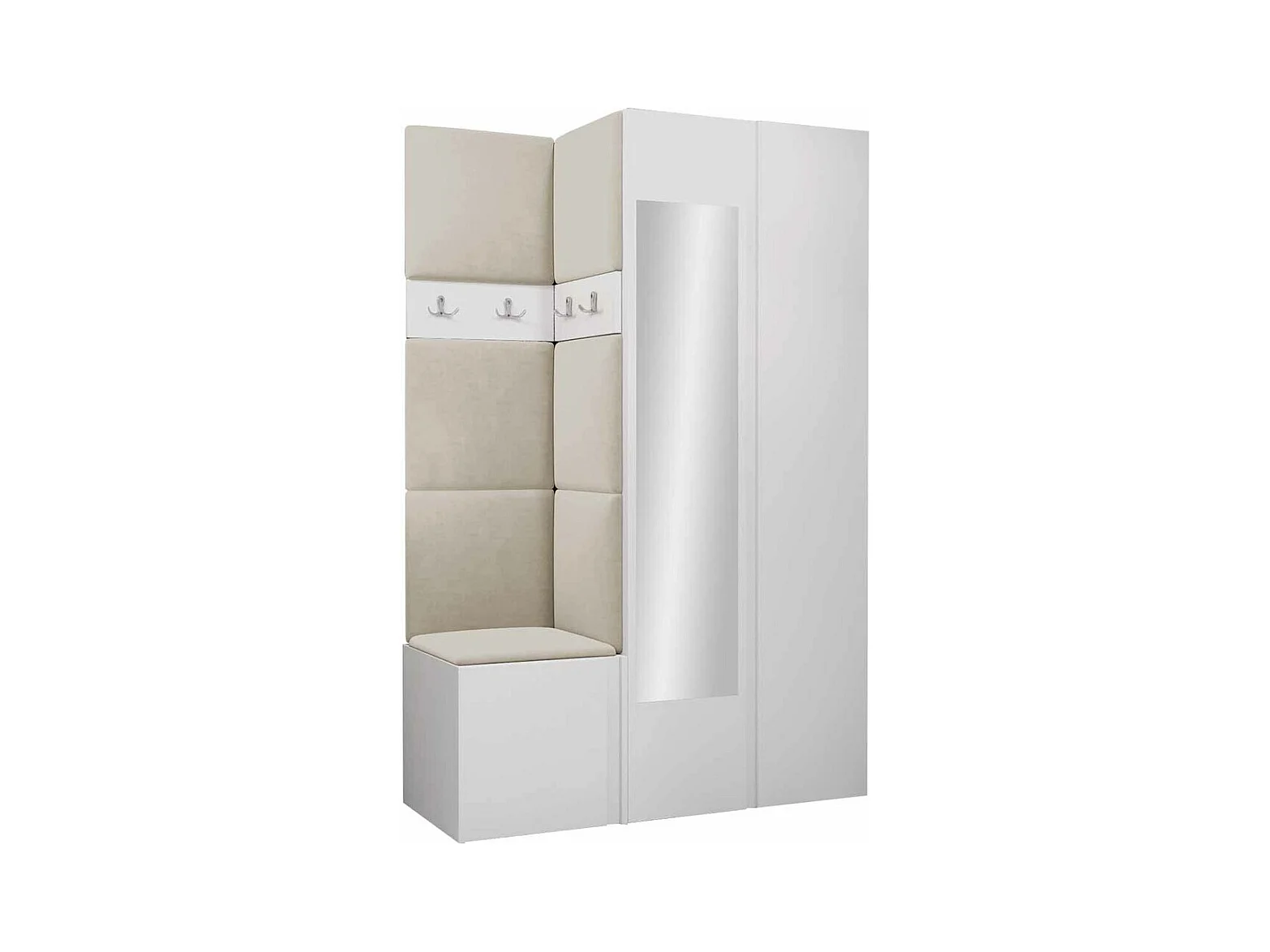 Meuble d'entrée Hartford 350, 186x116x44cm, Disponible, Blanc, Stratifié|Tissu