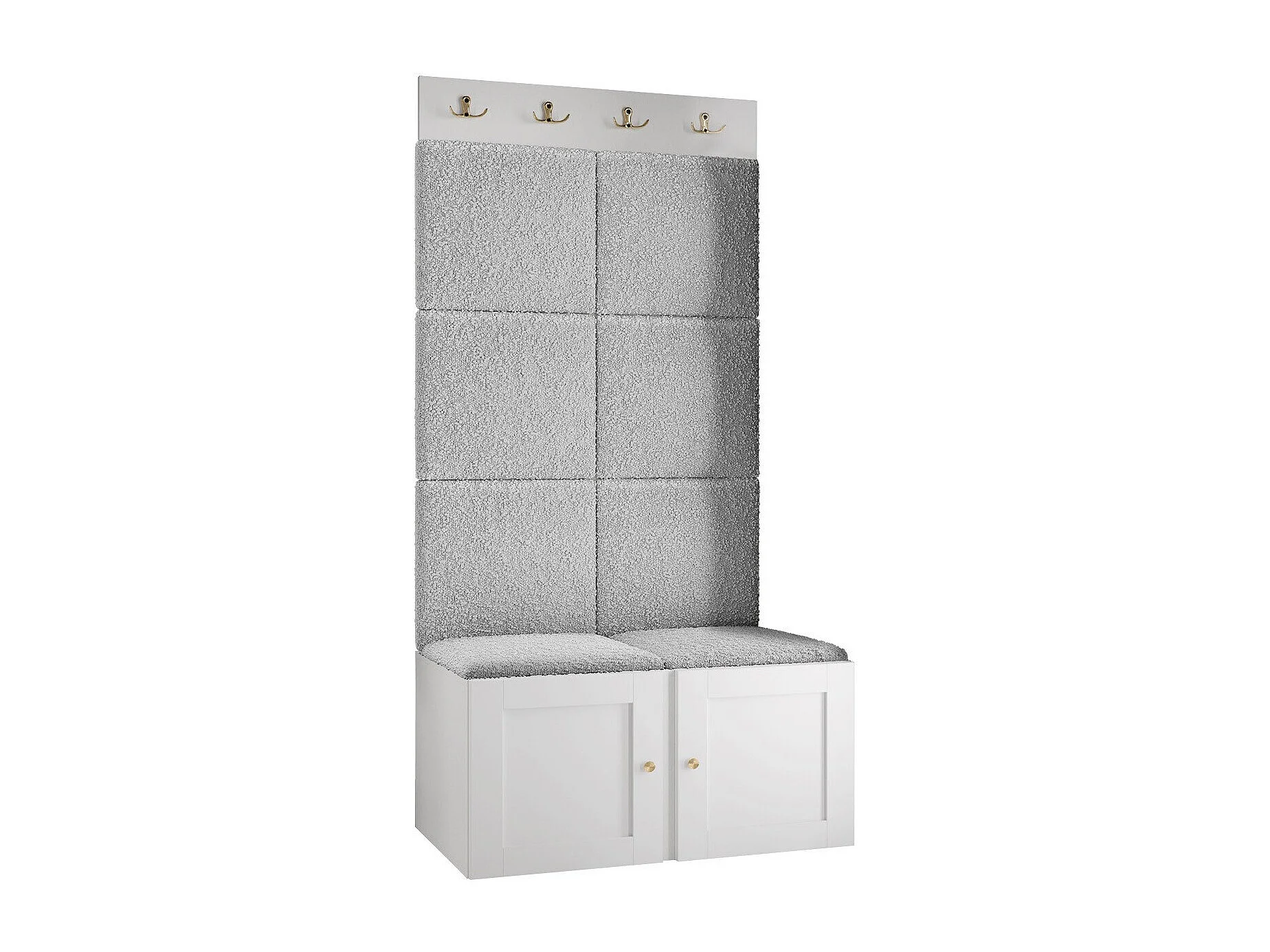 Meuble d'entrée Hartford 375, 186x84x46cm, Blanc|Gris clair, Stratifié|Tissu|MDF